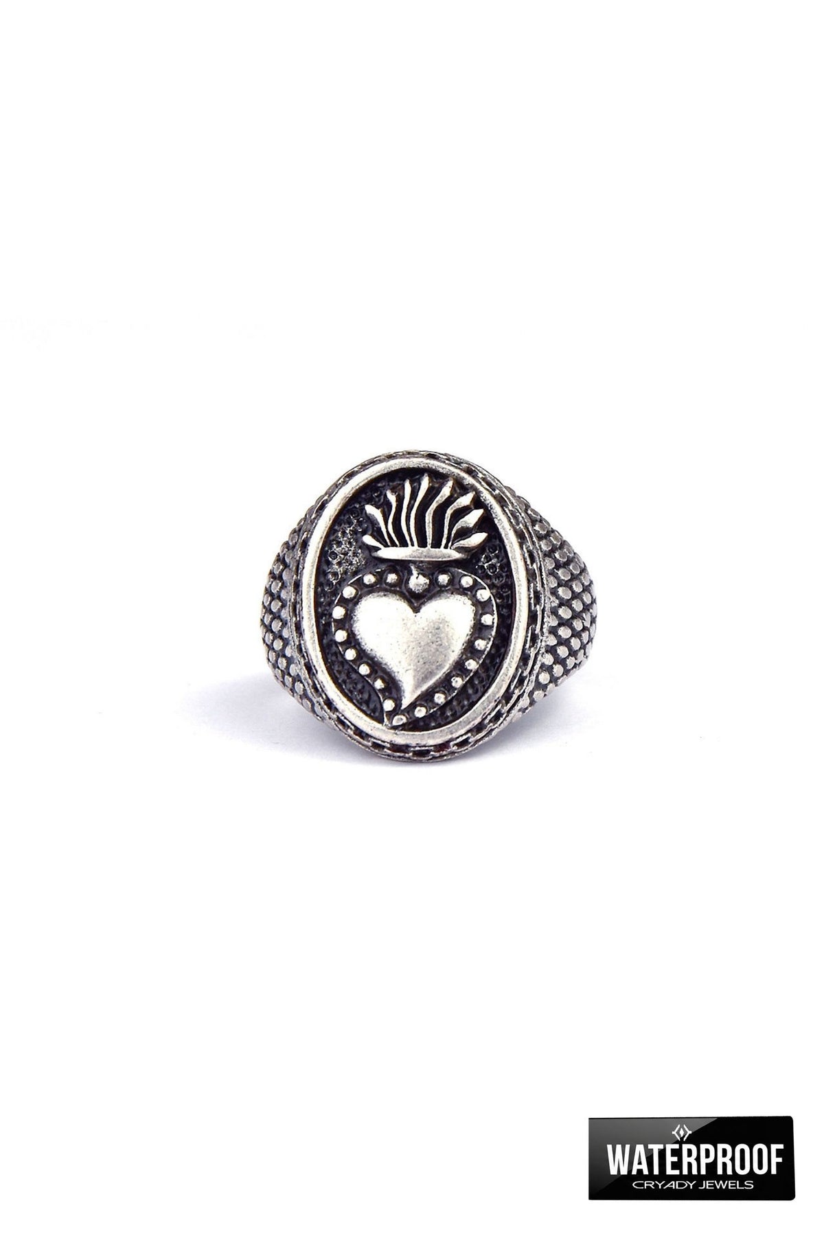 Simbolo per eccellenza della vita e del sentimento, ma anche dell’intelligenza: il “Sacro Cuore” è anche un porta fortuna. Lo abbiamo creato in lega seminaturale di zinco e alluminio, rivestito in argento brunito. Al centro si trova proprio il cuore sacro. L'anello Sacro Cuore lo puoi indossare da solo o assieme ad altre creazioni Cryady. Per uomo e per donna. Ogni creazione Cryady è realizzata artigianalmente nel nostro laboratorio modenese. I materiali utilizzati sono certificati in rispetto delle normative vigenti CEE. Consigli per preservarne la brillantezza: sebbene i nostri gioielli siano testati per resistere agli agenti corrosivi, consigliamo di evitare il contatto prolungato con profumi e acqua marina per mantenere la lucentezza nel tempo.