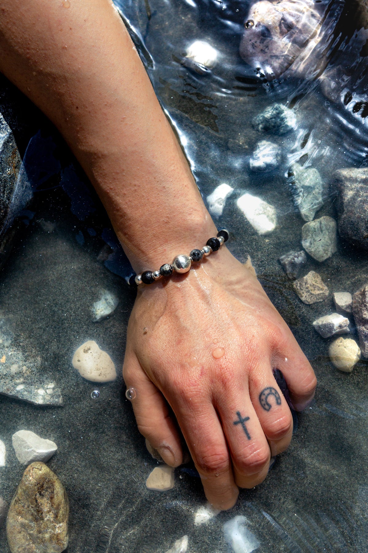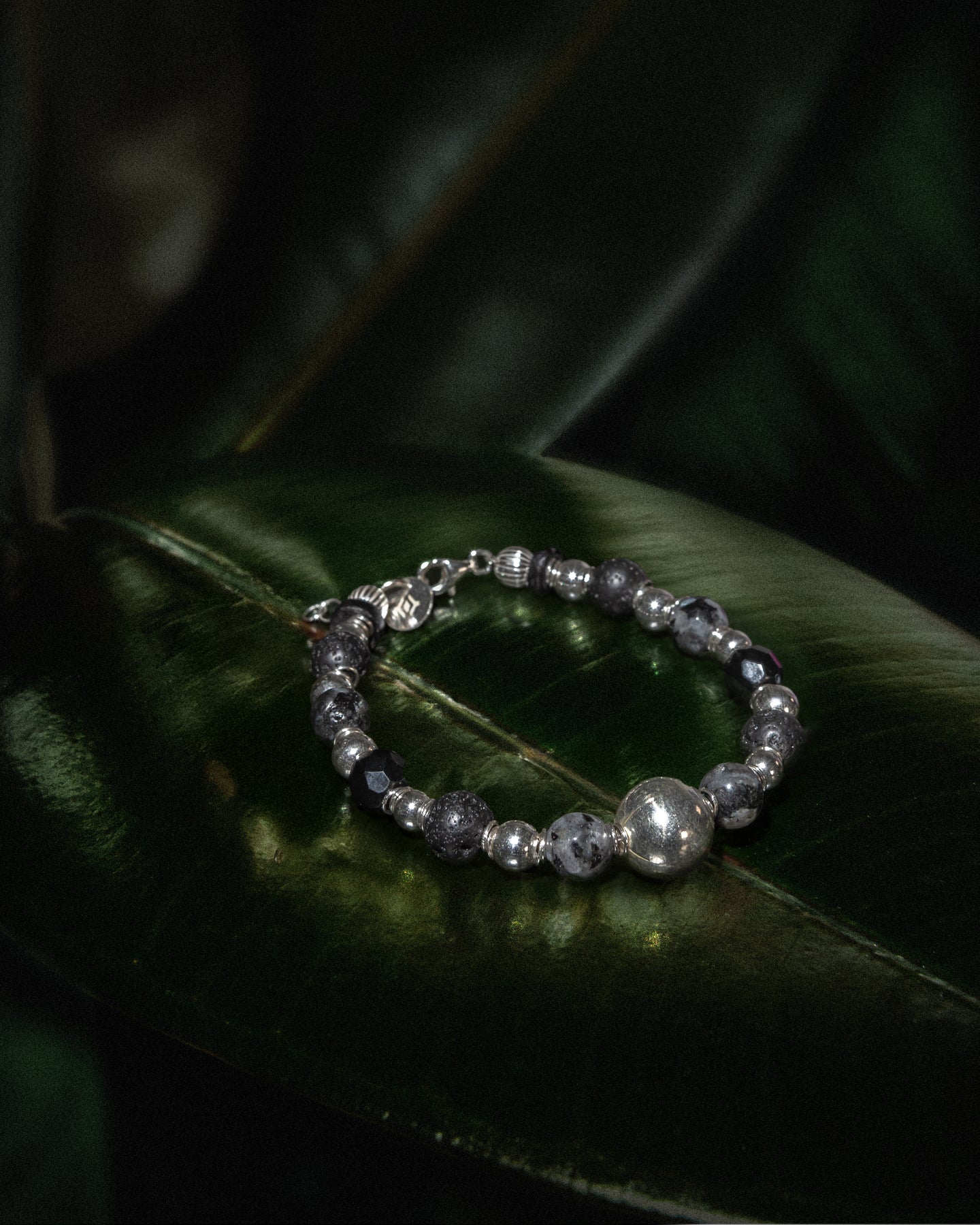 "Supernova" è un bracciale realizzato con sfere in argento di dimensione 5 millimetri, sfere in agata grigia, sfere in pietra lavica e sfere in cristallo nero sfaccettate. Ad alternare ogni sfera vi sono due anelle in argento. Al centro una sfera in argento di diametro 12 millimetri. Il bracciale Supernova è unisex come tutte le altre nostre creazioni, da indossare da solo o insieme ad altri gioielli Cryady. Ogni creazione Cryady è realizzata artigianalmente con amore e passione. I materiali utilizzati sono certificati in rispetto delle normative vigenti CEE.