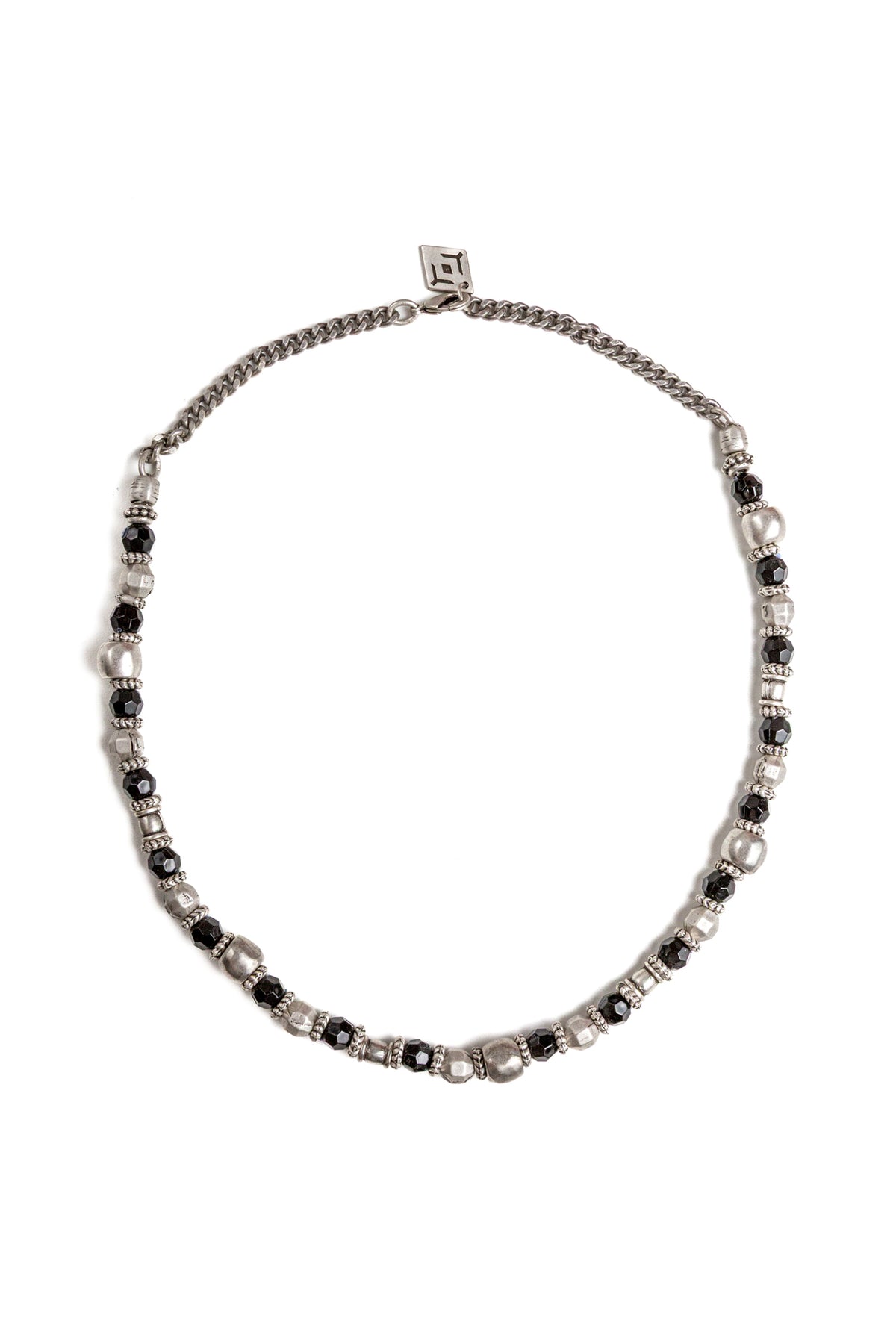 Prezzo originale €65,00"Drip" è una collana realizzata con componenti in lega seminaturale (zinco, alluminio) e ottone. Il rivestimento è in argento brunito anallergico. La collana Greatest ha elementi in metallo alternati a sfere sfaccettate in cristallo nero. La collana Drip la puoi indossare da sola o assieme ad altri gioielli Cryady. Per uomo e per donna. Ogni creazione Cryady è realizzata artigianalmente con dedizione e passione.