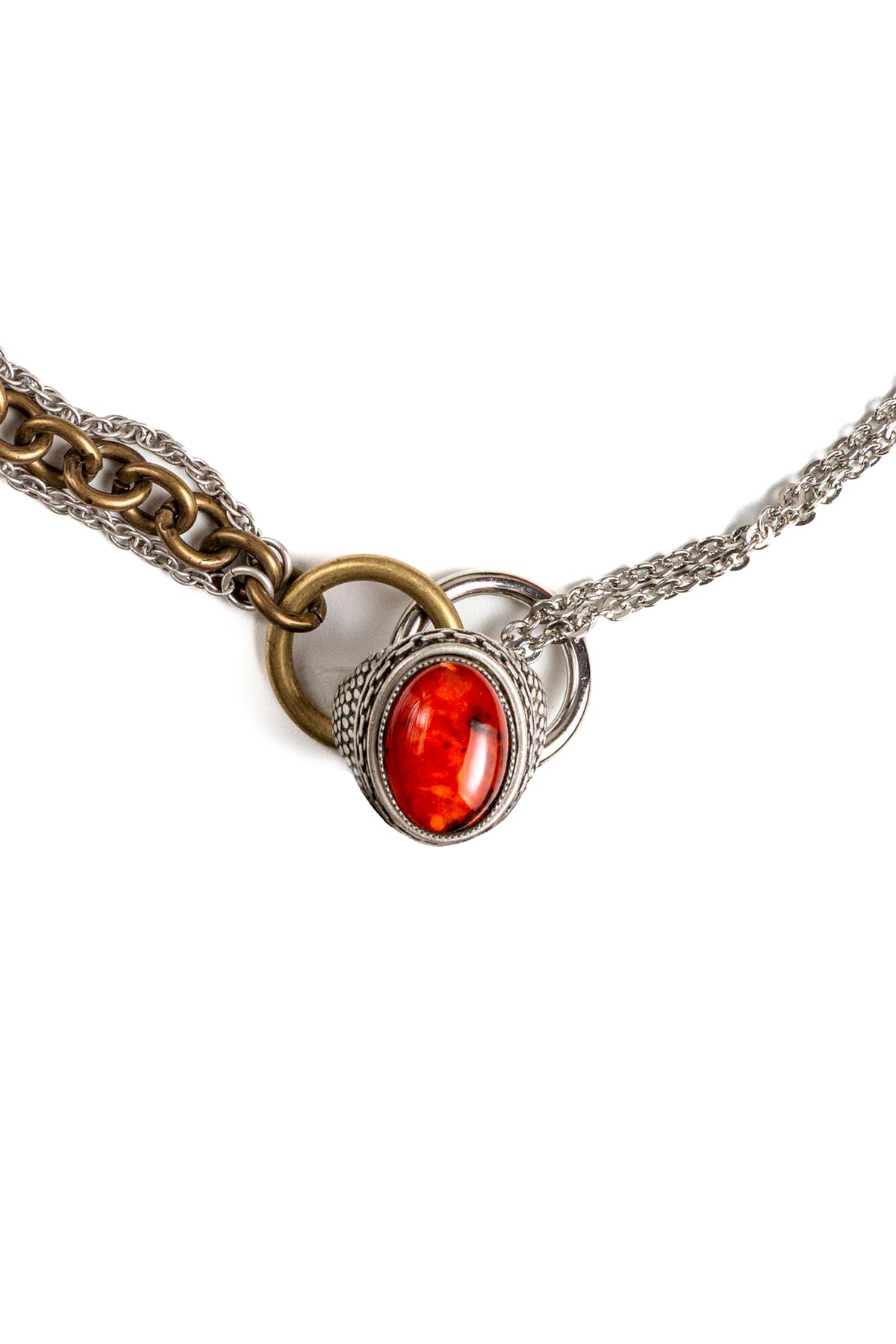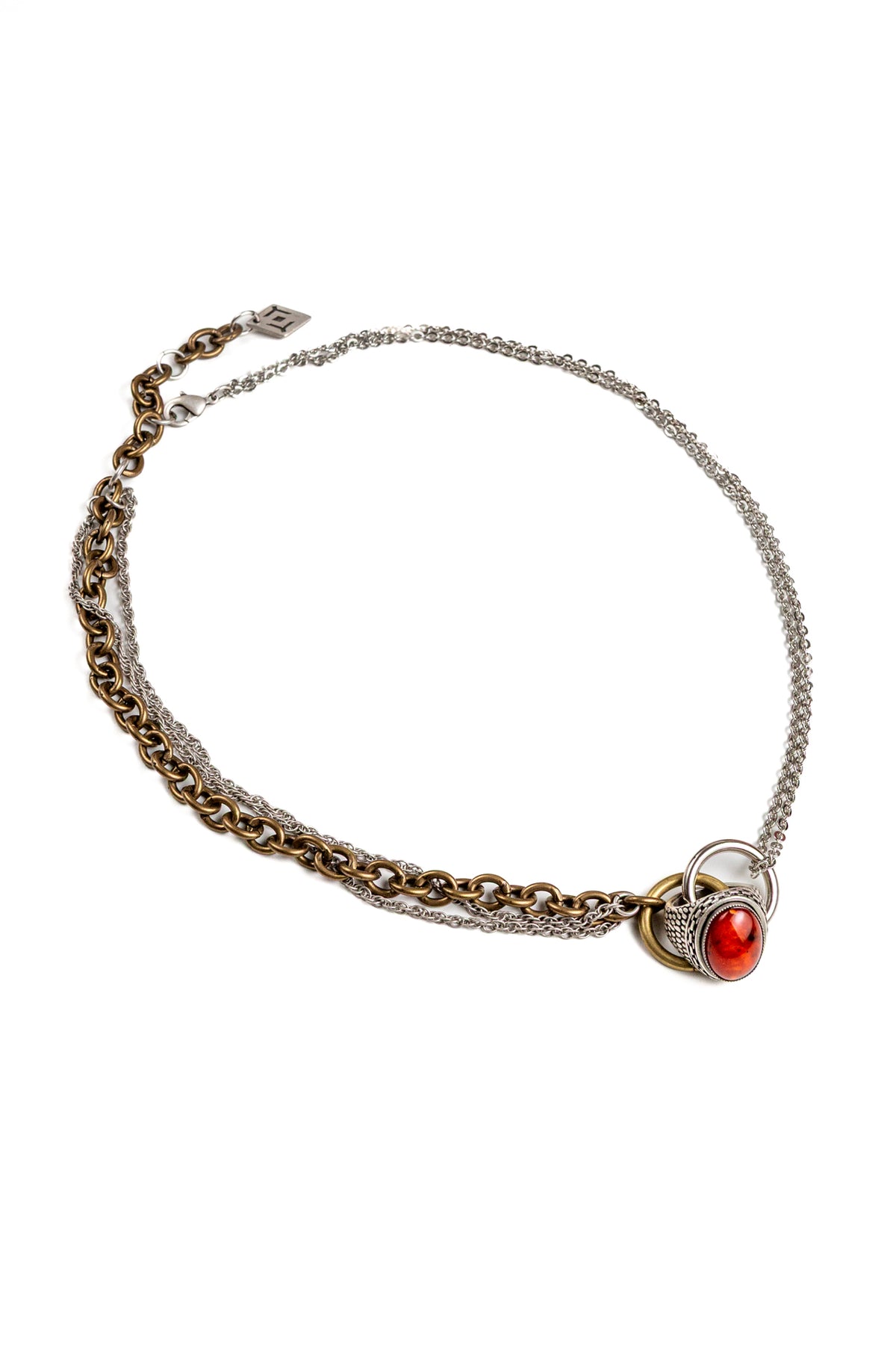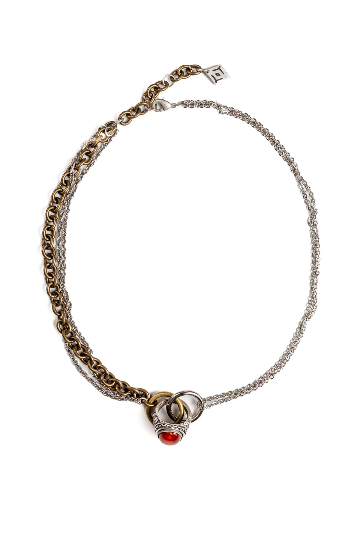 Prezzo originale €63,00 Prezzo scontato €47,25"Ego rosso" è una collana realizzata con componenti in lega seminaturale (zinco, alluminio) e ottone. Il rivestimento è in argento brunito anallergico, ottone antico e argento lucido. La collana Ego rosso ha al centro due anelle e un anello con una pietra rossa incastonata. La collana Ego rosso la puoi indossare da sola o assieme ad altri gioielli Cryady. Per uomo e per donna. Ogni creazione Cryady è realizzata artigianalmente con dedizione e passione.