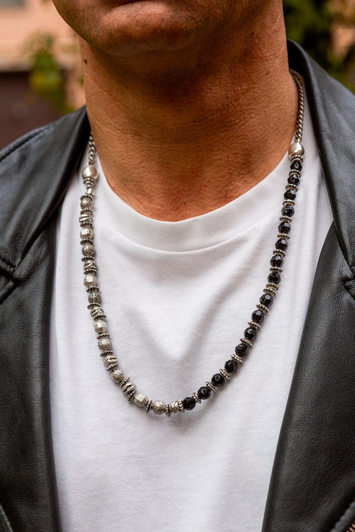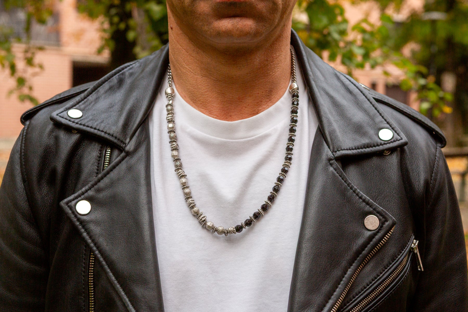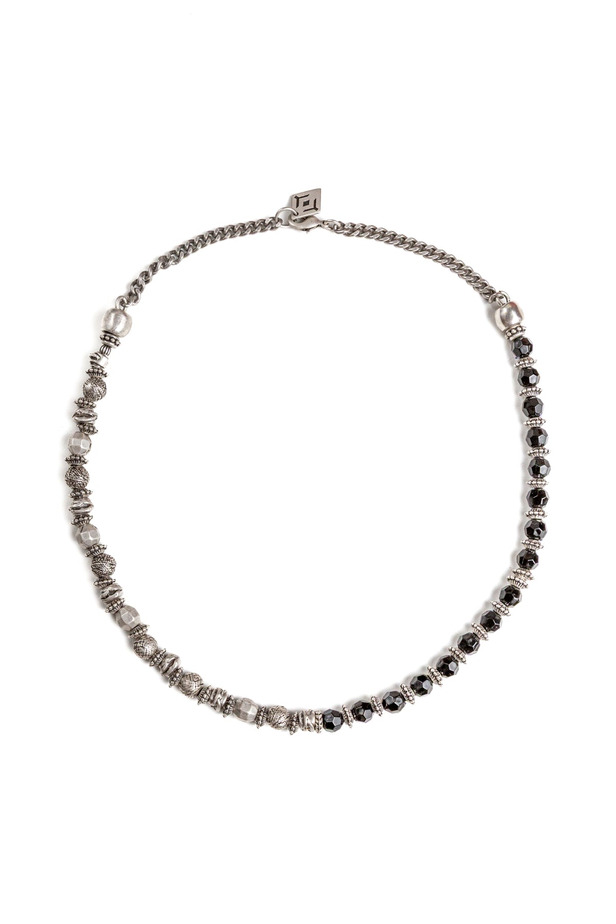 "Personality" è una collana realizzata con componenti in lega seminaturale (zinco, alluminio) e ottone. Il rivestimento è in argento brunito anallergico. La collana Personality è come per metà composta con soli elementi in metallo e l'altra metà con sfere sfaccettate in cristallo nero. La collana personality la puoi indossare da sola o assieme ad altri gioielli Cryady. Per uomo e per donna. Ogni creazione Cryady è realizzata artigianalmente con dedizione e passione.