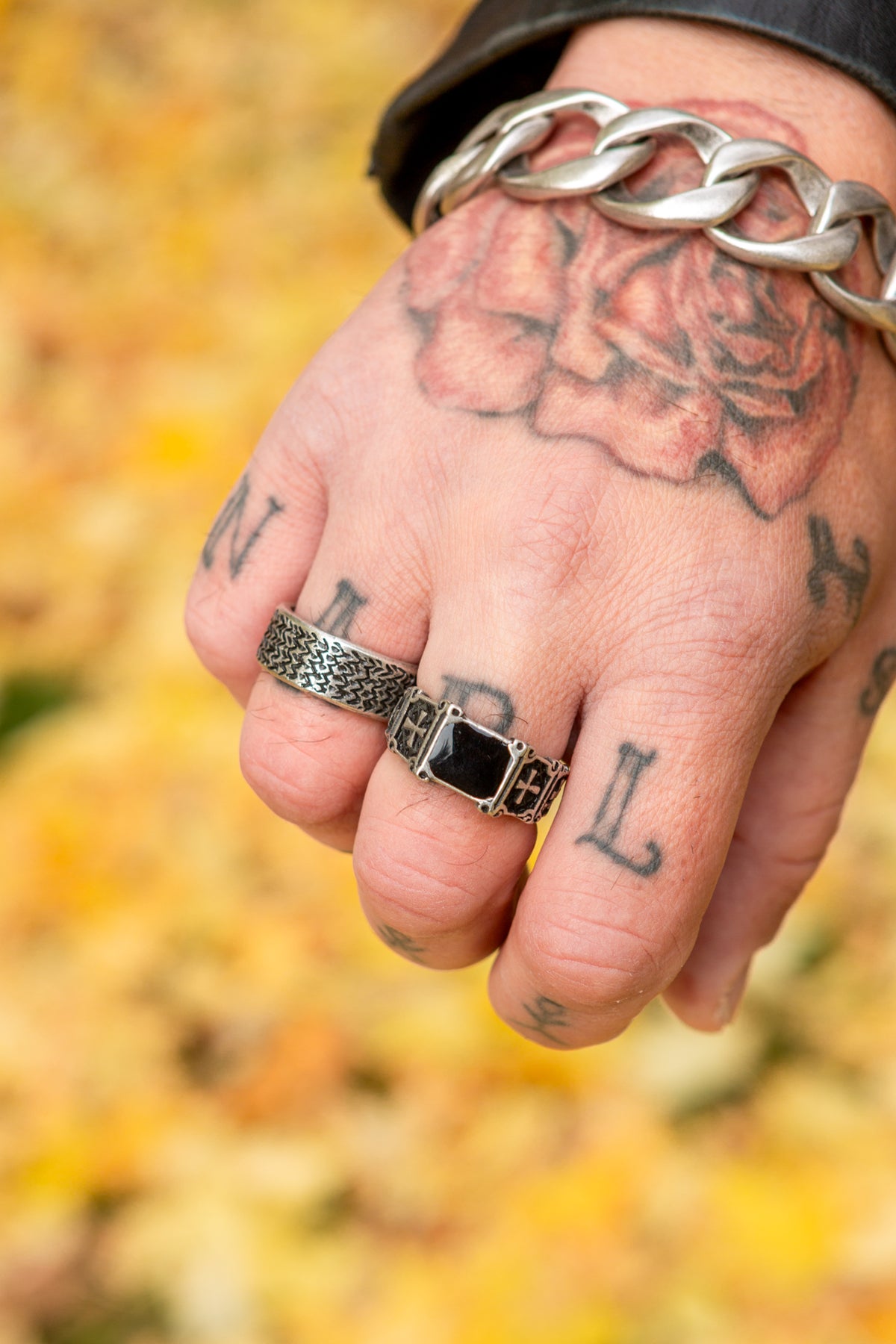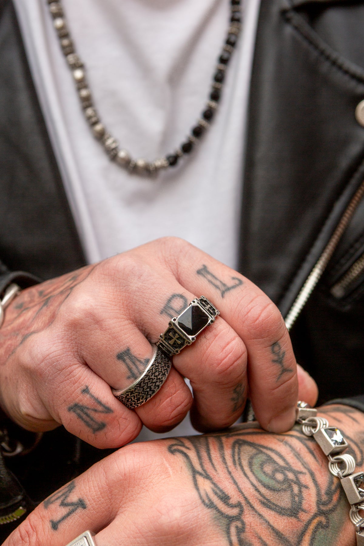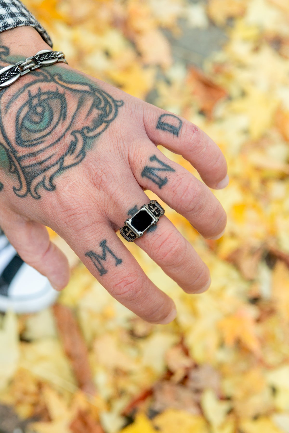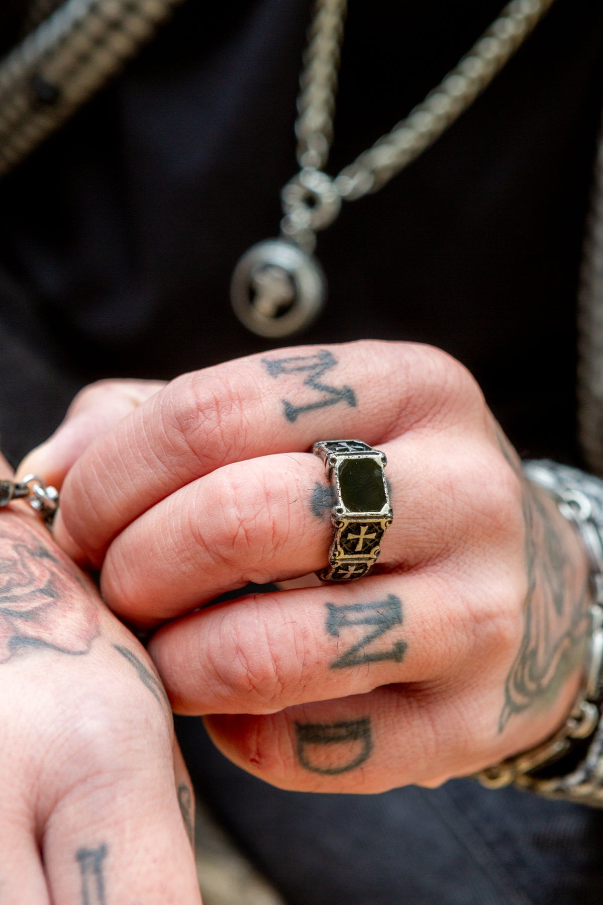 TRATTAMENTO: argento invecchiato anallergico 100% senza nikel trattamento protettivo antimacchia smalto nero ANELLO CON CROCI LATERALIBAGNATO IN ARGENTO INVECCHIATO ANALLERGICO E TRATTAMENTO ANTI-MACCHIA. SMALTO NERO NELLA PARTE CENTRALE.