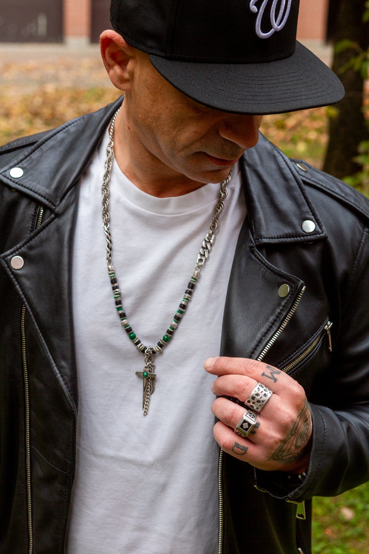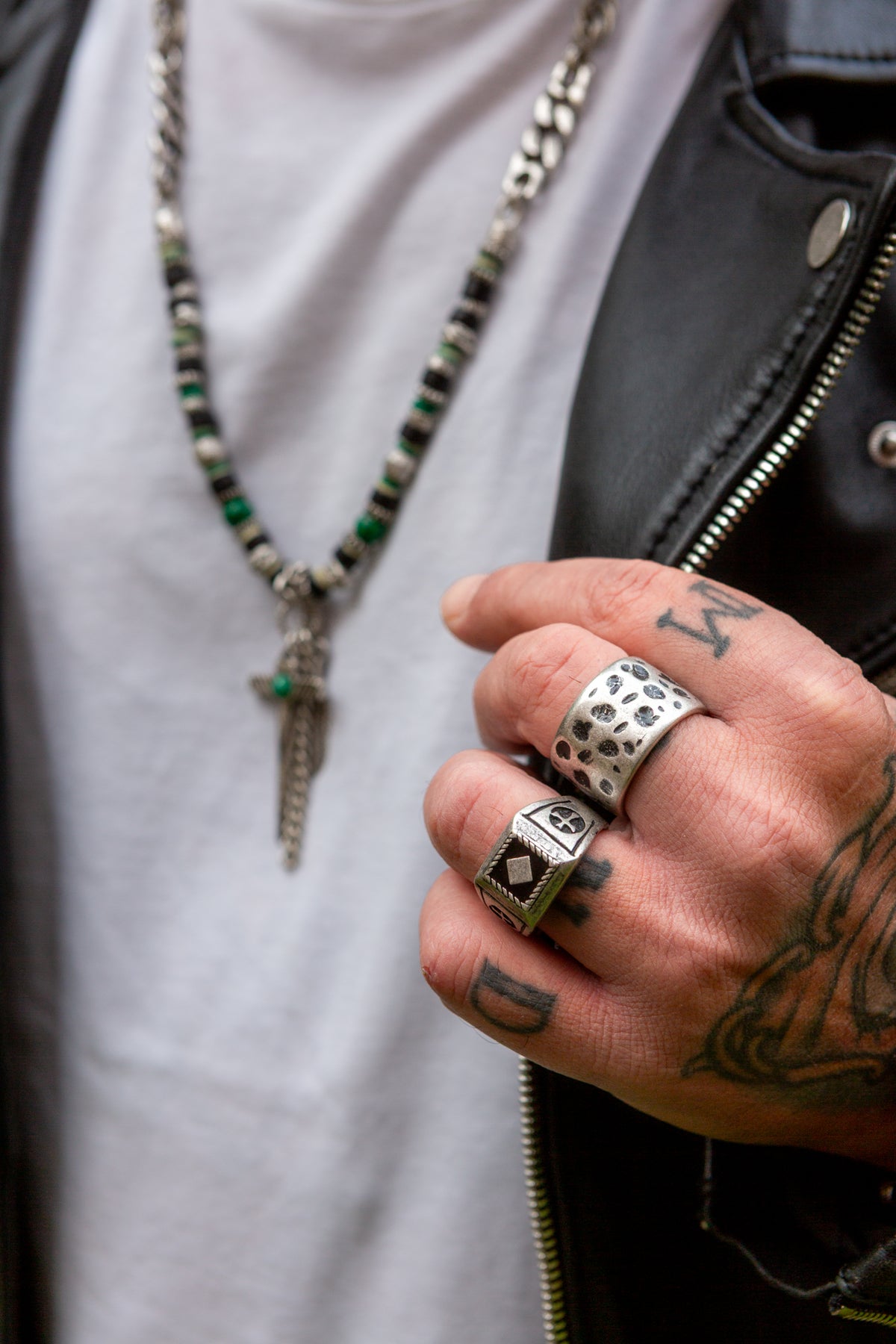 L'idea che ha dato vita a questo anello è nata visionando collezioni di fibbie realizzate nella nostra azienda artigianale degli anni '90. Da qui la voglia di creare un accessorio semplice nella forma ma originale nella lavorazione. Materiale: lega seminaturale (zinco, magnesio, alluminio) Trattamento: argento antico anallergico antimacchia Anello a fedina alta con lavorazione martellata bagnato in argento invecchiato anallergico e trattamento anti-macchia.