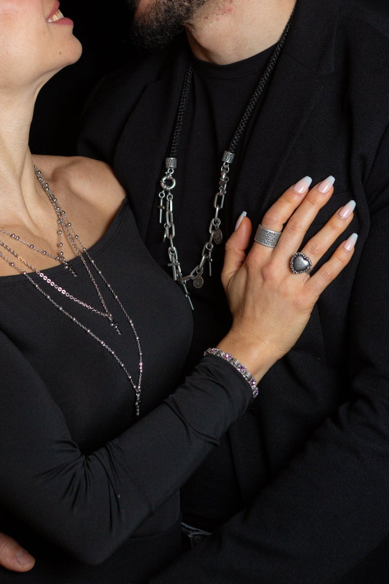 Per creare questo anello ci siamo ispirati ai gioielli antichi, unendo la nostra anima un po' rock, un po' urban. Da qui nasce l'anello Nuda al cui centro spicca un cuore frastagliato. L'anello Nuda è adatto su qualsiasi outfit, per lei e anche per lui. Sì perché i nostri gioielli pensiamo possano essere per tutti senza distinzioni e senza differenze. Per uomo e per donna. Ogni creazione Cryady è realizzata artigianalmente con amore e passione, proprio per questo una non sarà mai perfettamente identica all’altra come se fosse un prodotto realizzato in serie.