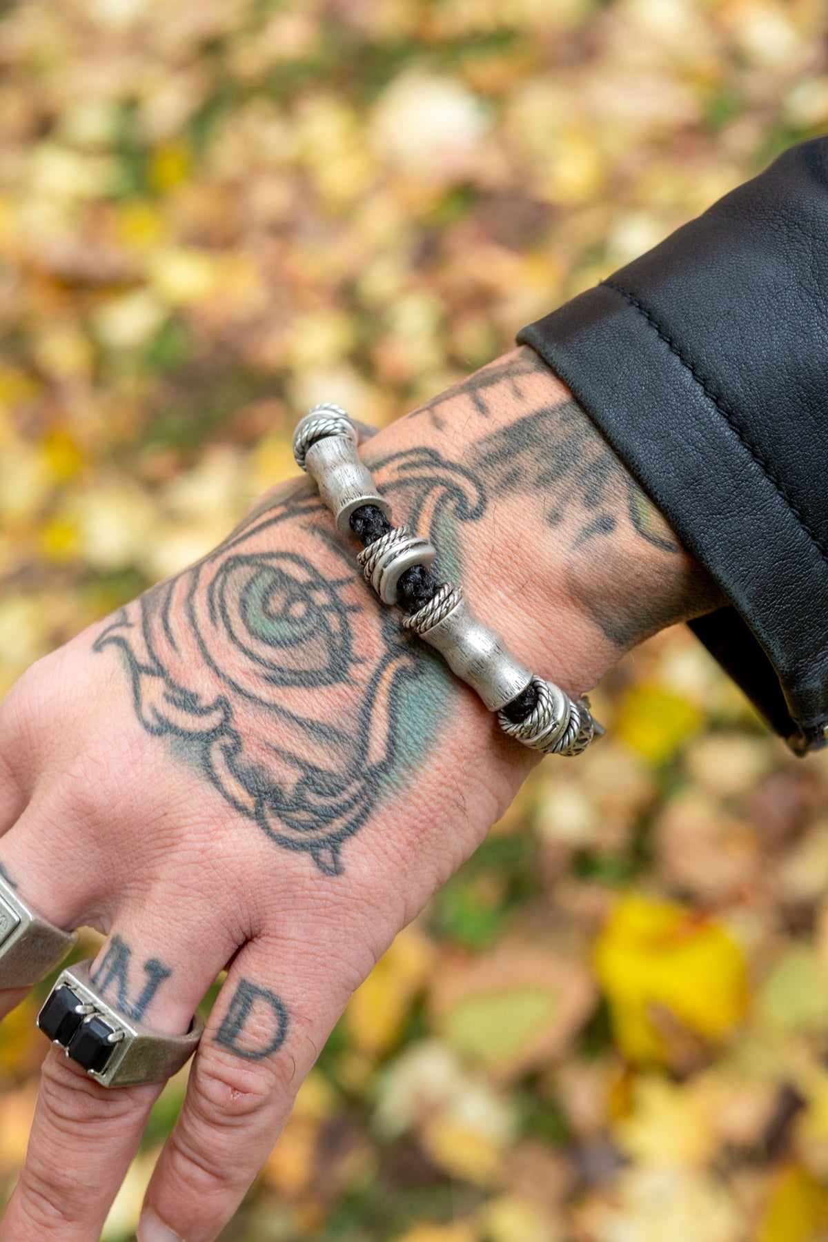 Il bracciale “Vortex” racchiude la vera artigianalità Made in Italy. Il connubio tra cordone nero intrecciato e la nostra lega seminaturale bagnata in argento invecchiato conferisce a questo bracciale una vera autenticità.