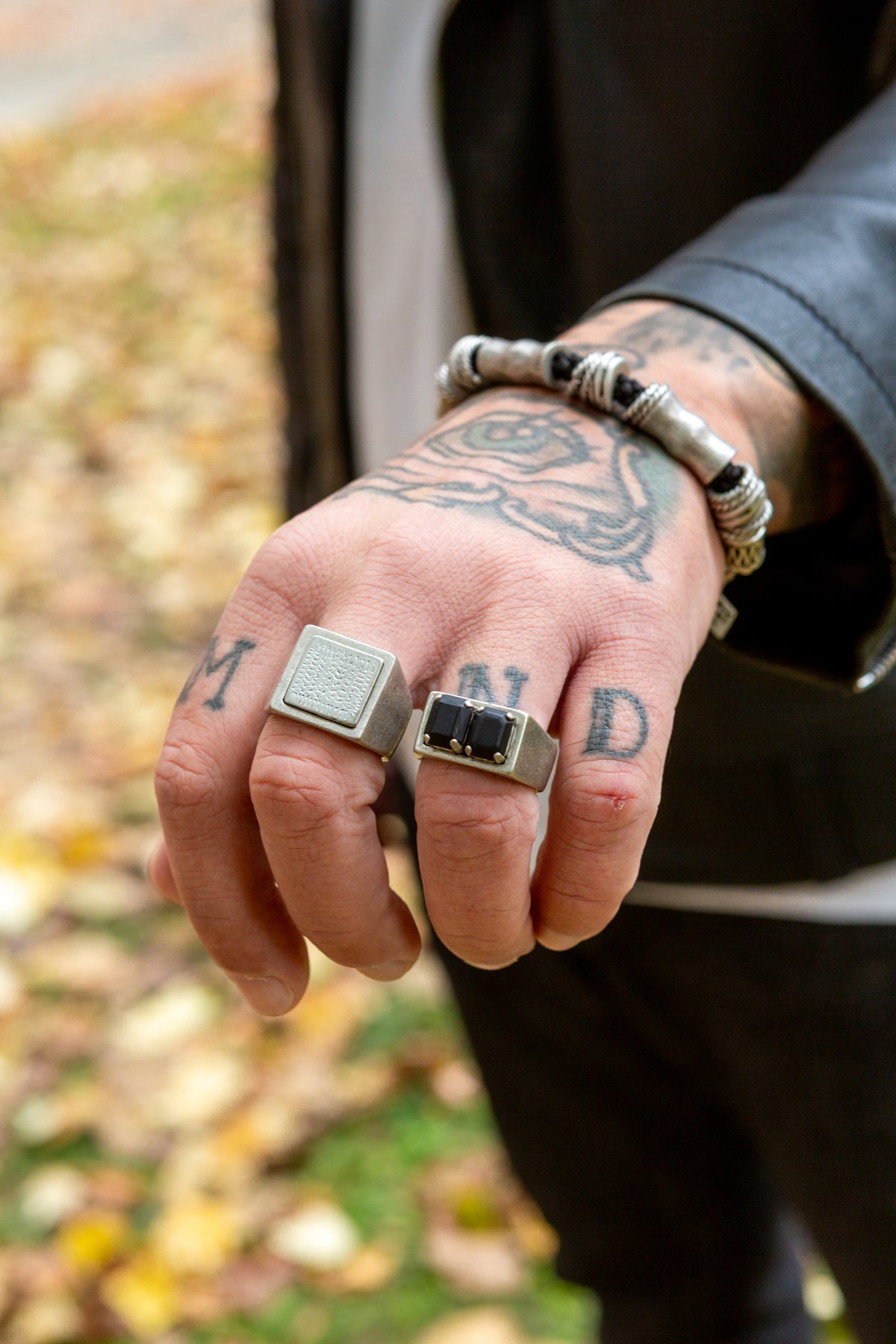 Ad impreziosirlo vi sono anche terminali laterali zigrinati. Questo gioiello può essere abbinato a tutti i look: da quello classico per renderlo unico ad uno stile casual o rock.