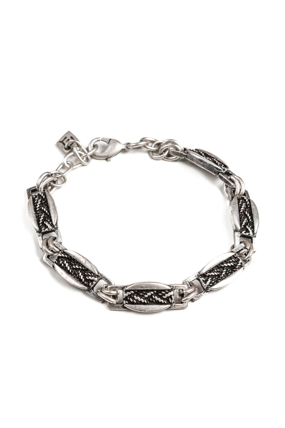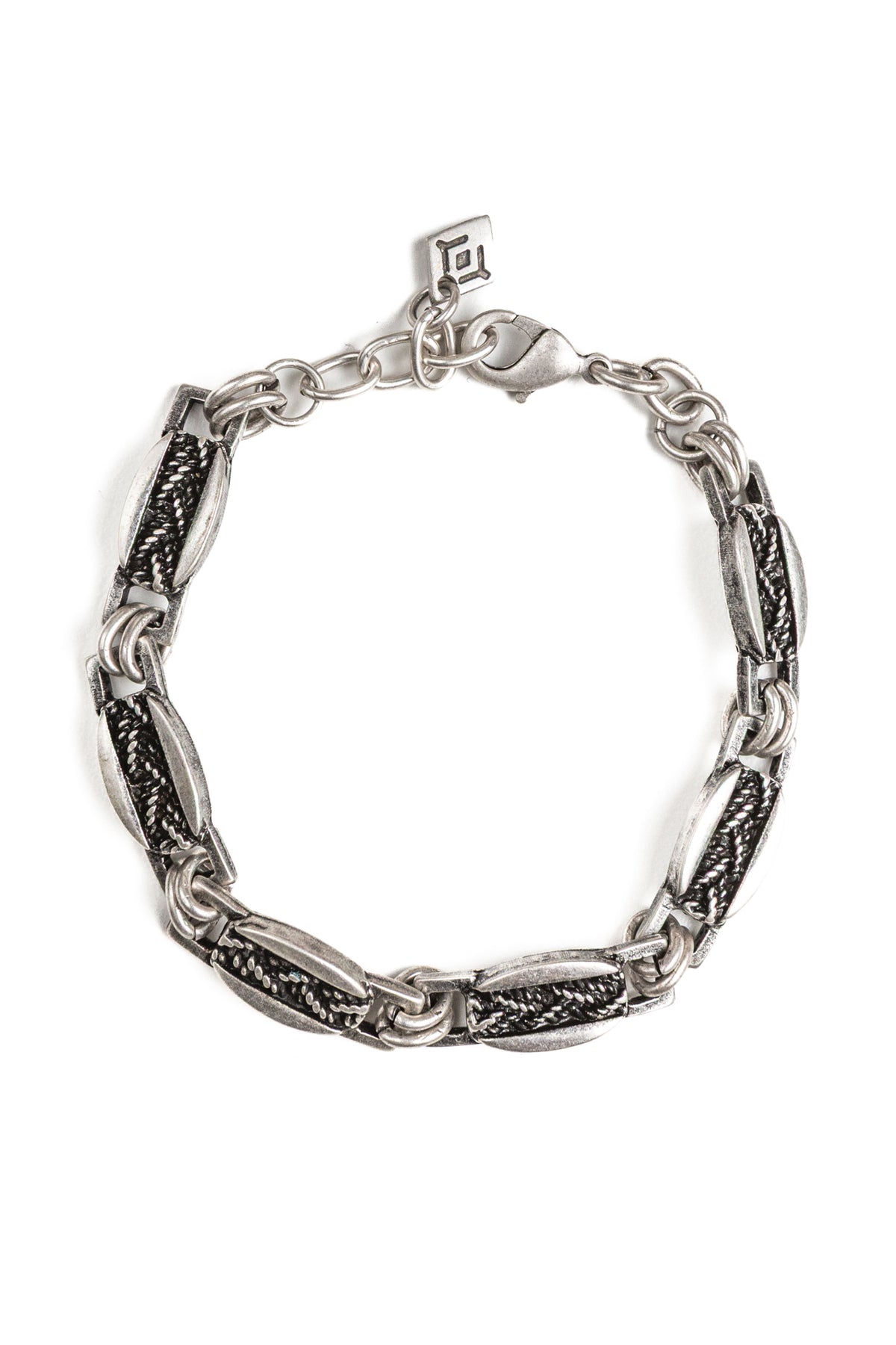 Bracciale in lega di zinco e alluminio e ottone rivestito in argento antico anallergico. Il bracciale Benson è unisex come tutte le altre nostre creazioni, da indossare da solo o insieme ad altri gioielli Cryady. Ogni creazione Cryady è realizzata artigianalmente con amore e passione. I materiali utilizzati sono certificati in rispetto delle normative vigenti CEE.