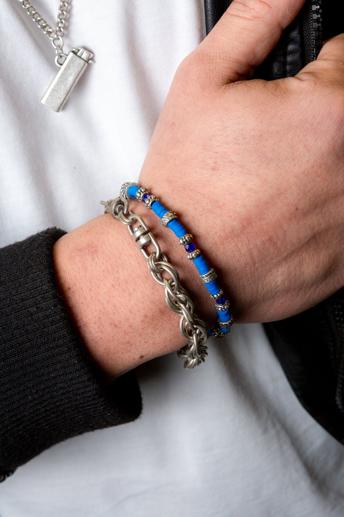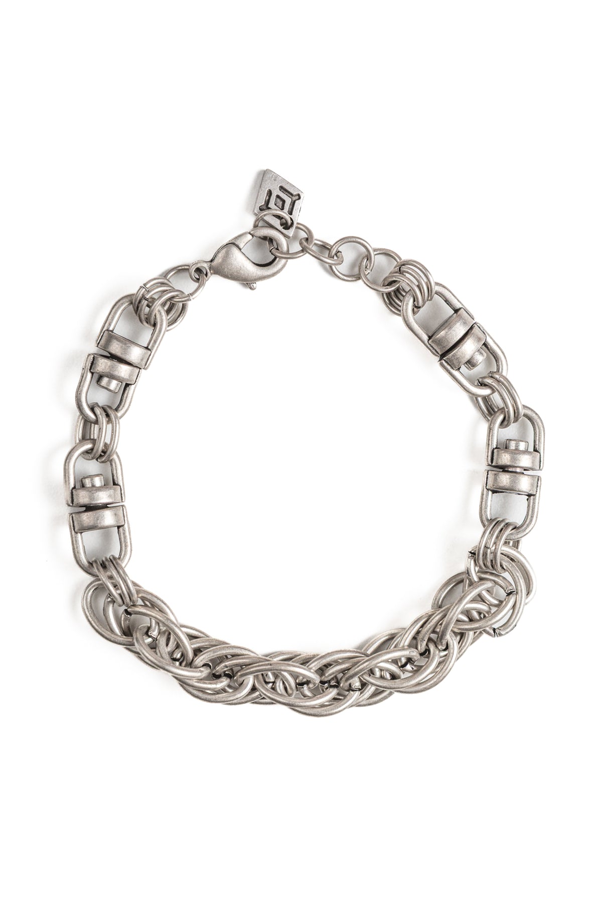 Il bracciale “Dominio” è interamente realizzato con catene ed elementi in lega di zinco e alluminio il tutto galvanizzato in argento invecchiato anallergico. Questo gioiello può essere abbinato a tutti i look: da quello classico per renderlo unico ad uno stile casual o rock. I nostri accessori sono unisex e possono essere indossati sia da lui che da lei per avere un tocco ancor più accattivante del proprio outfit. Ogni accessorio della collezione Cryady è ideato e realizzato interamente nel nostro laboratorio modenese dai nostri artigiani. Scegliere di acquistare un gioiello Cryady scegli di acquistare il vero Made in Italy.