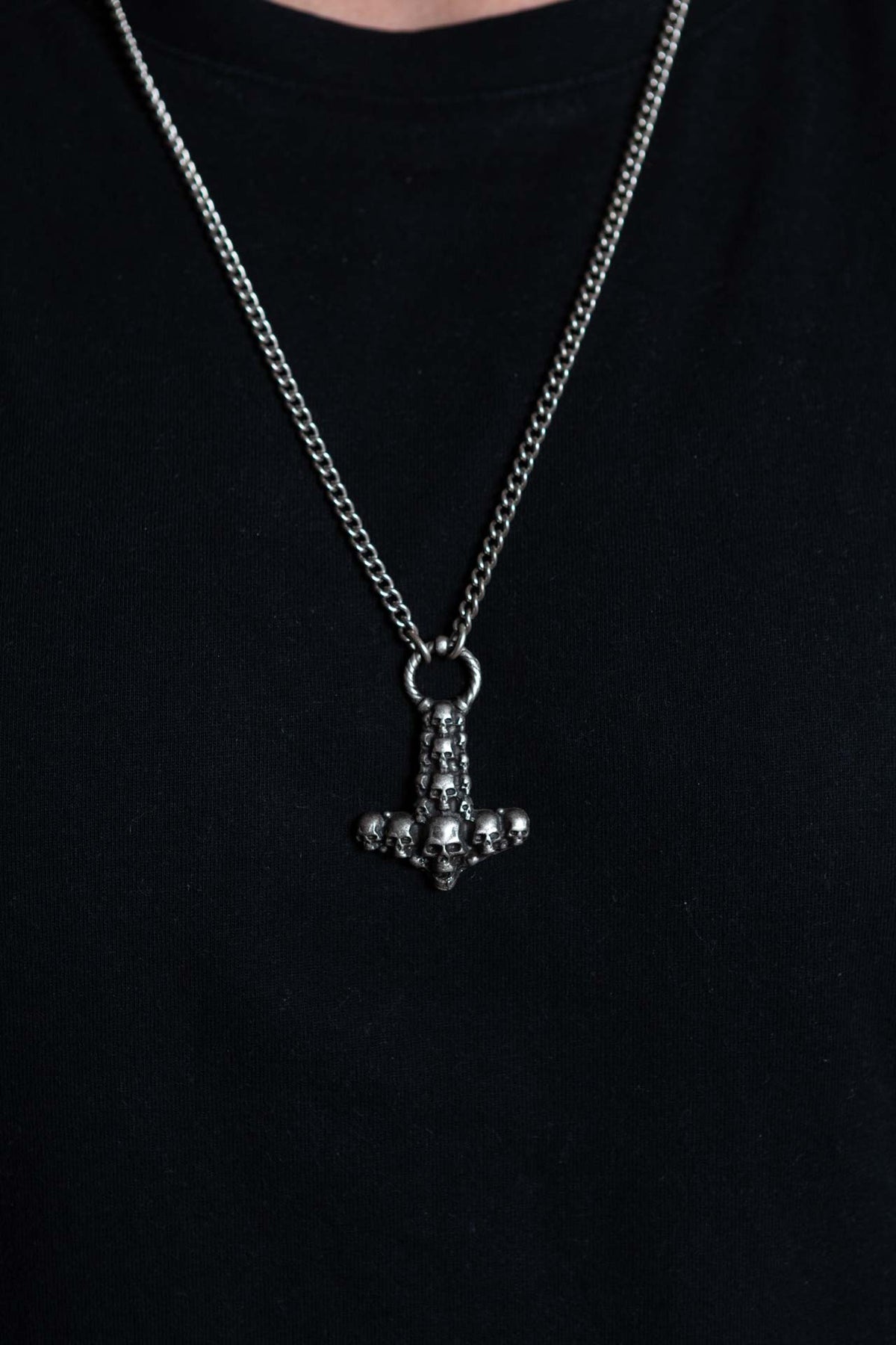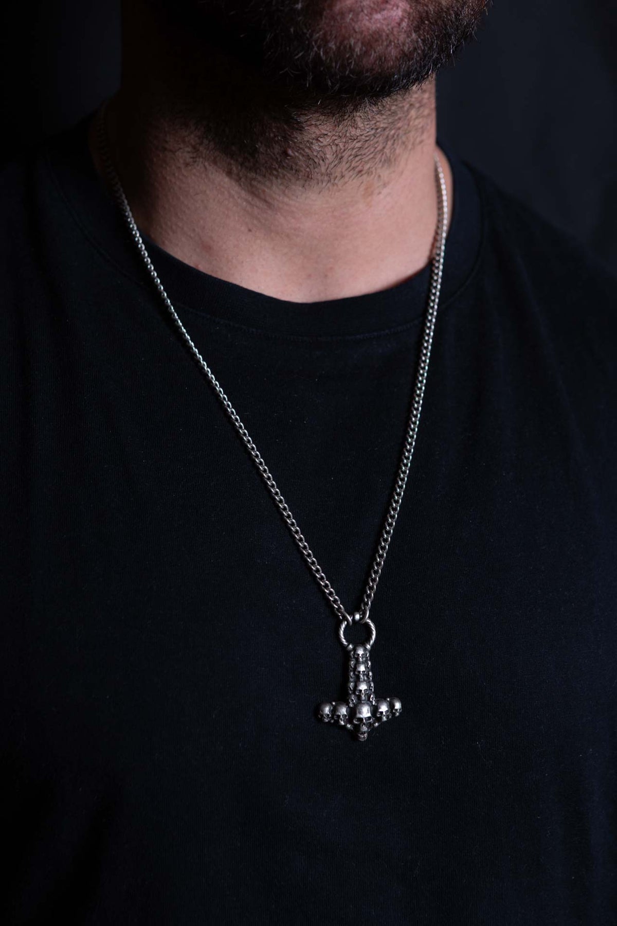 Collana con ciondolo a forma di ancora realizzata con tanti piccoli teschi. La collana Jack la puoi indossare da sola o assieme ad altri gioielli Cryady. Per uomo e per donna. Ogni creazione Cryady è realizzata artigianalmente con dedizione e passione. I materiali utilizzati sono tutti certificati in rispetto delle normative vigenti CEE.