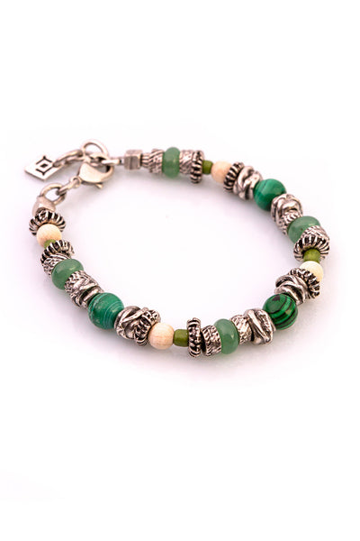 Three necklaces in one, handcrafted bracelets, matching rings.