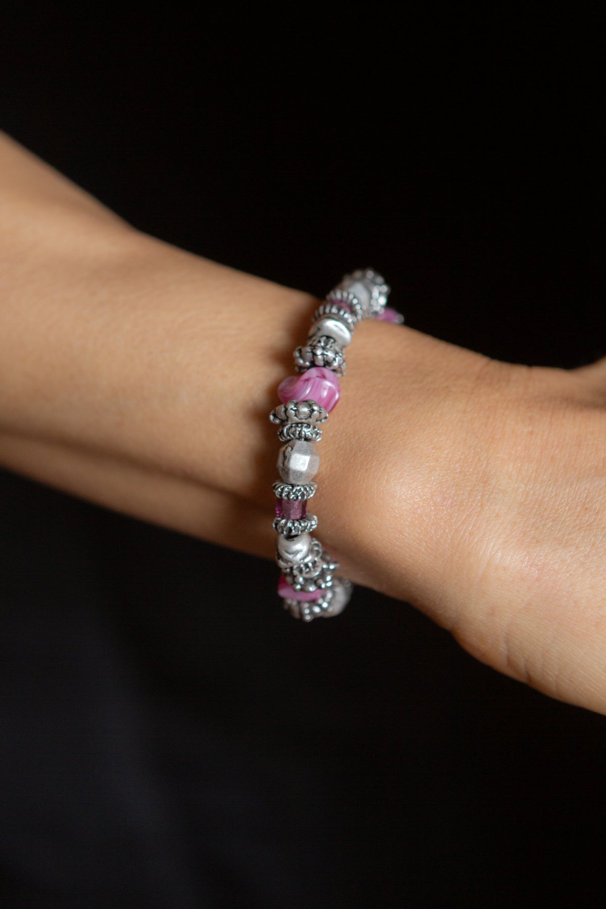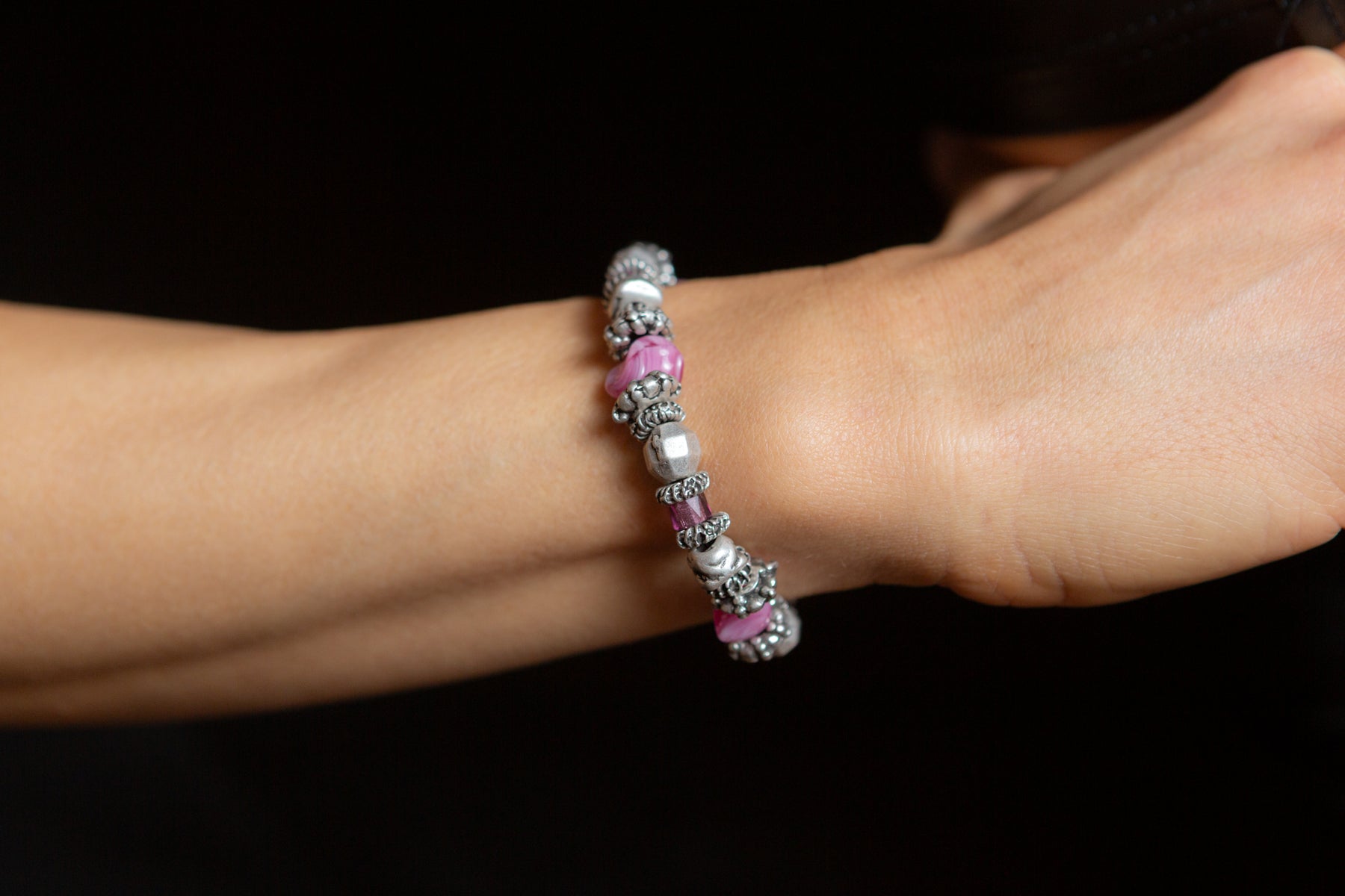 Material: Aleación seminatural (magnesio, zinc, aluminio), latón resina, cristal rosa.