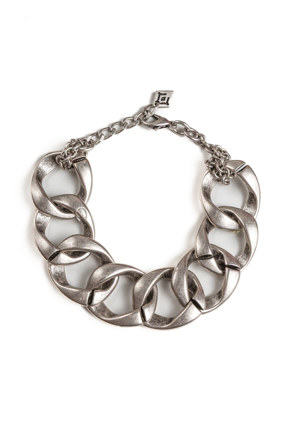 Bracciale in lega di zinco e alluminio e ottone galvanizzato in argento antico anallergico. Il bracciale District è unisex come tutte le altre nostre creazioni, da indossare da solo o insieme ad altri gioielli Cryady. Ogni creazione Cryady è realizzata artigianalmente con amore e passione. I materiali utilizzati sono certificati in rispetto delle normative vigenti CEE.