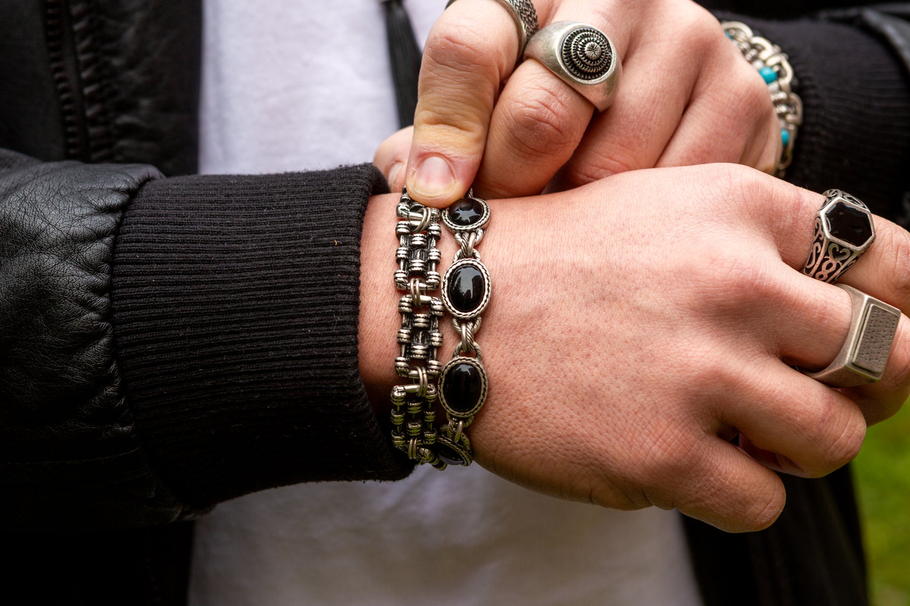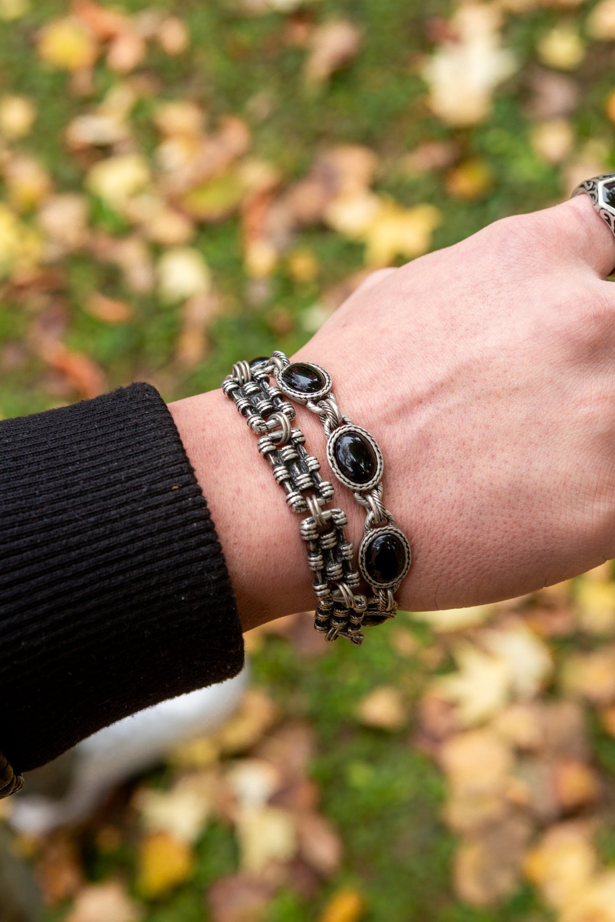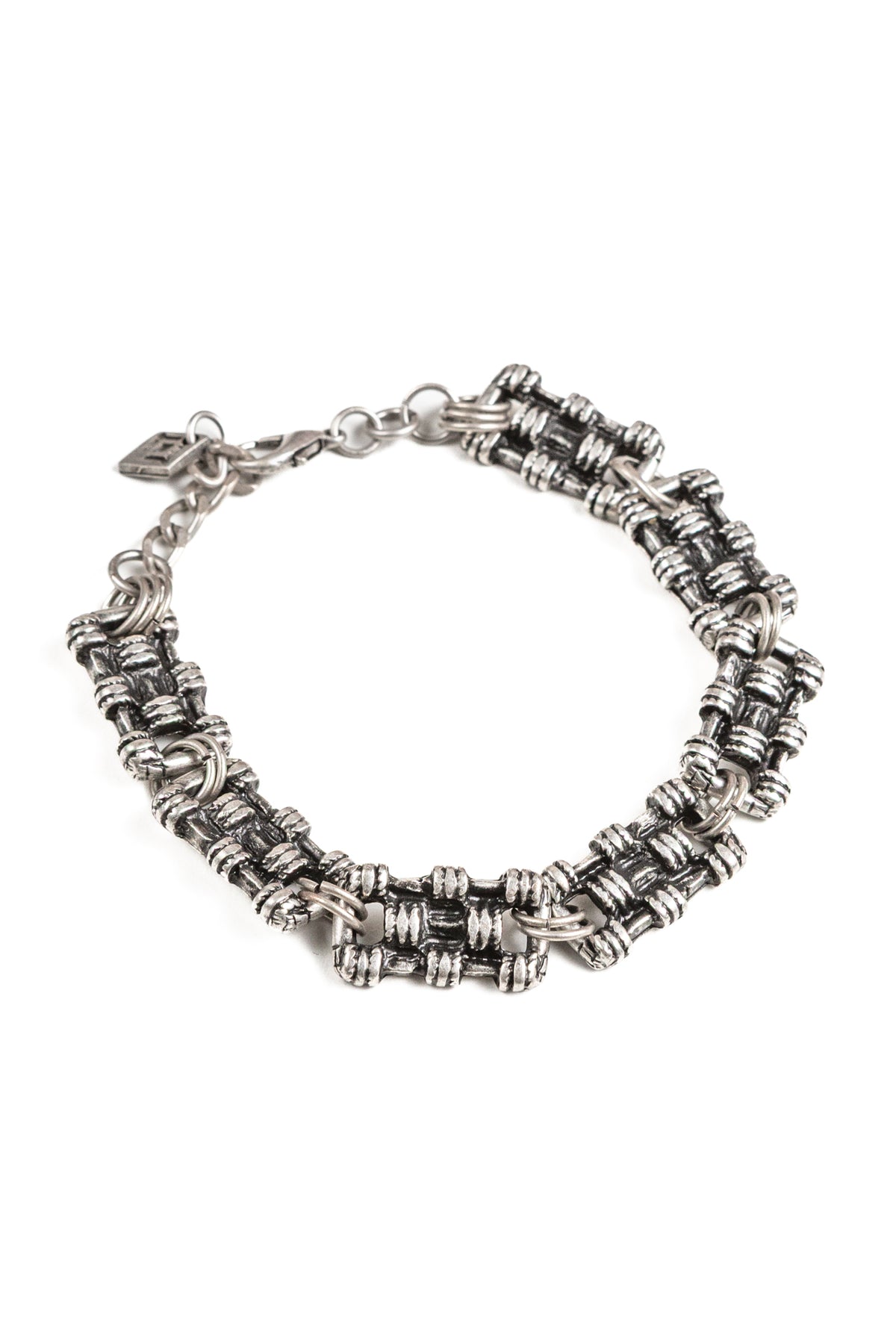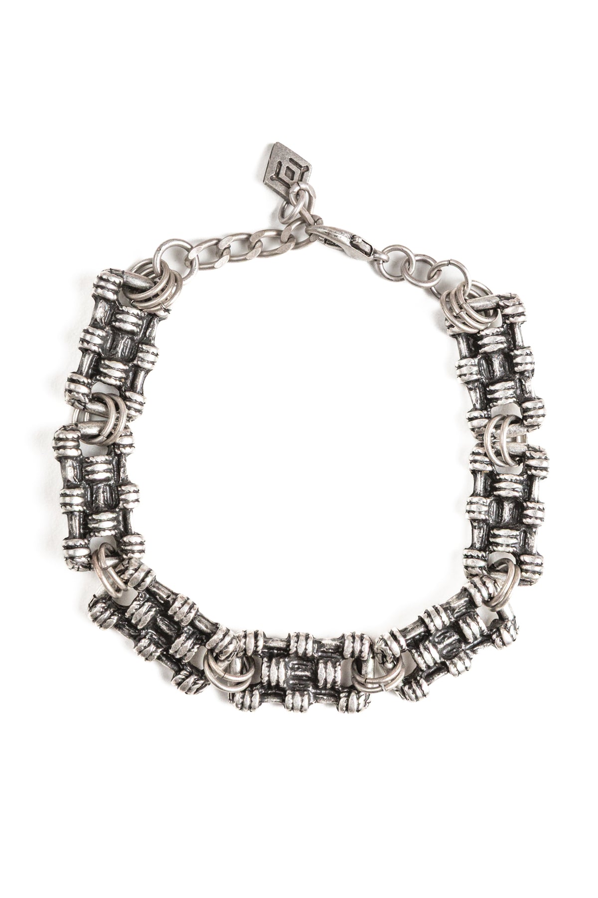 Bracciale in lega di zinco e alluminio e ottone rivestito in argento antico anallergico. Il bracciale Arcanum è unisex come tutte le altre nostre creazioni, da indossare da solo o insieme ad altri gioielli Cryady. Ogni creazione Cryady è realizzata artigianalmente con amore e passione. I materiali utilizzati sono certificati in rispetto delle normative vigenti CEE.