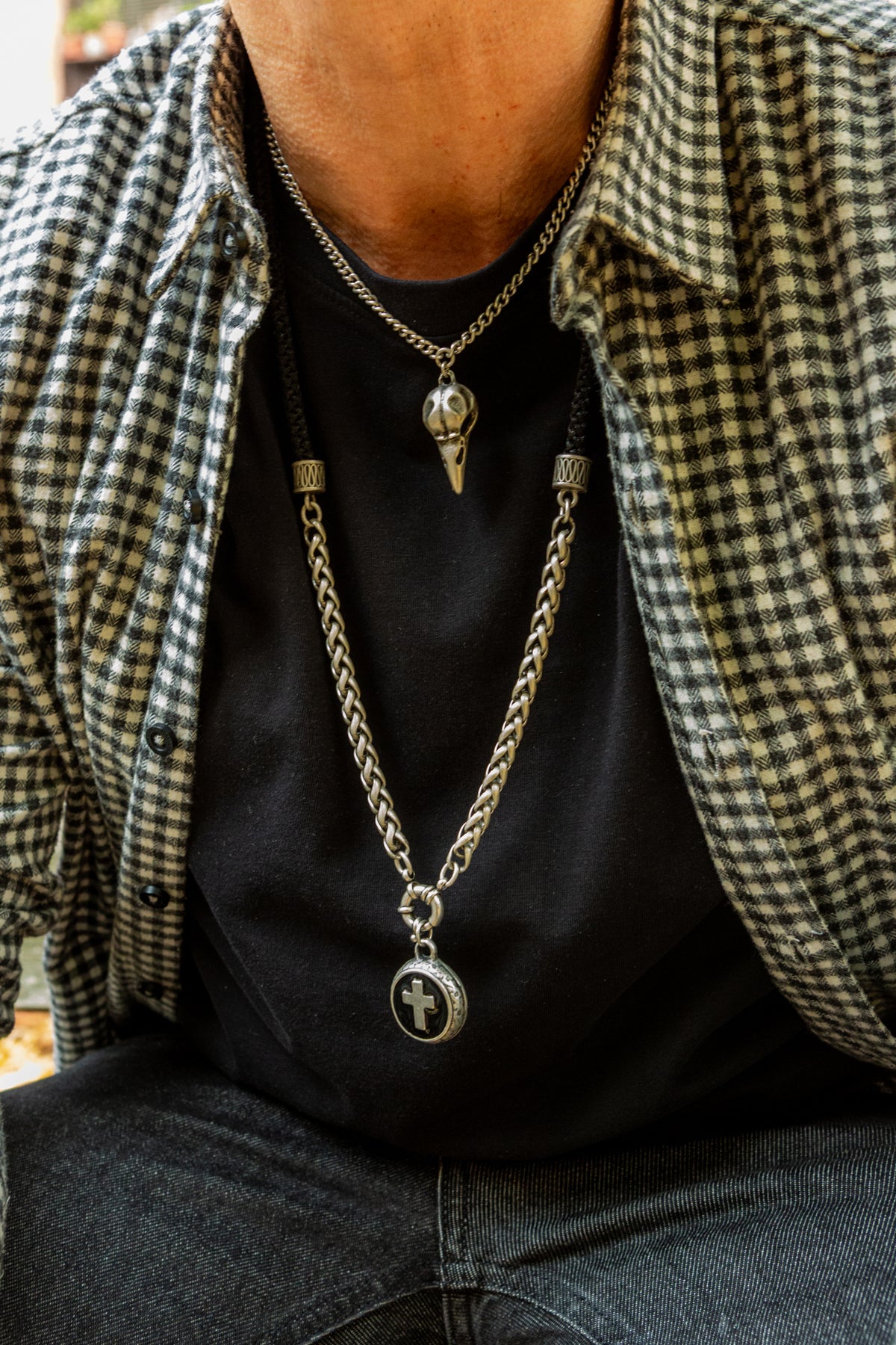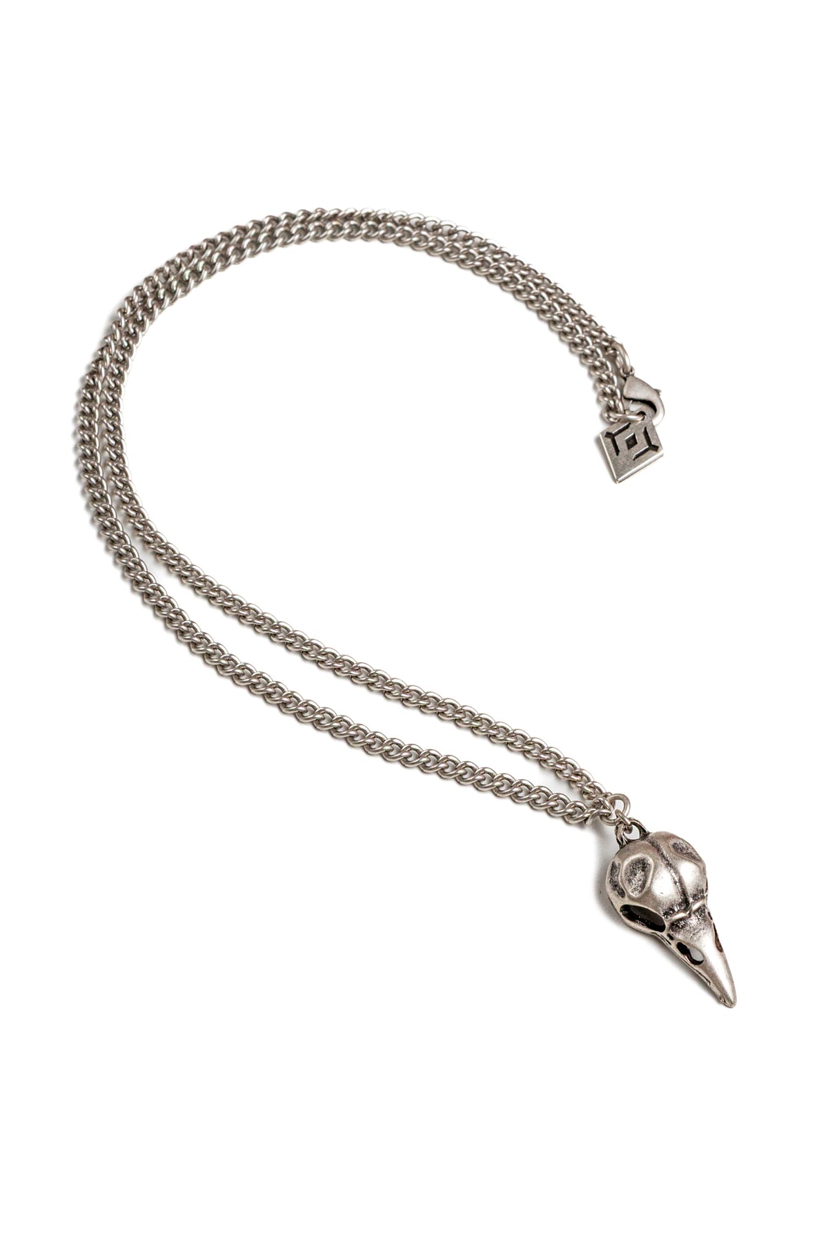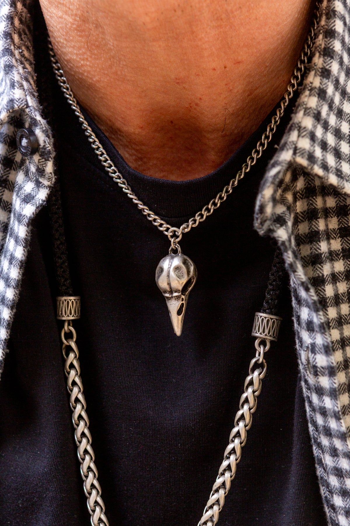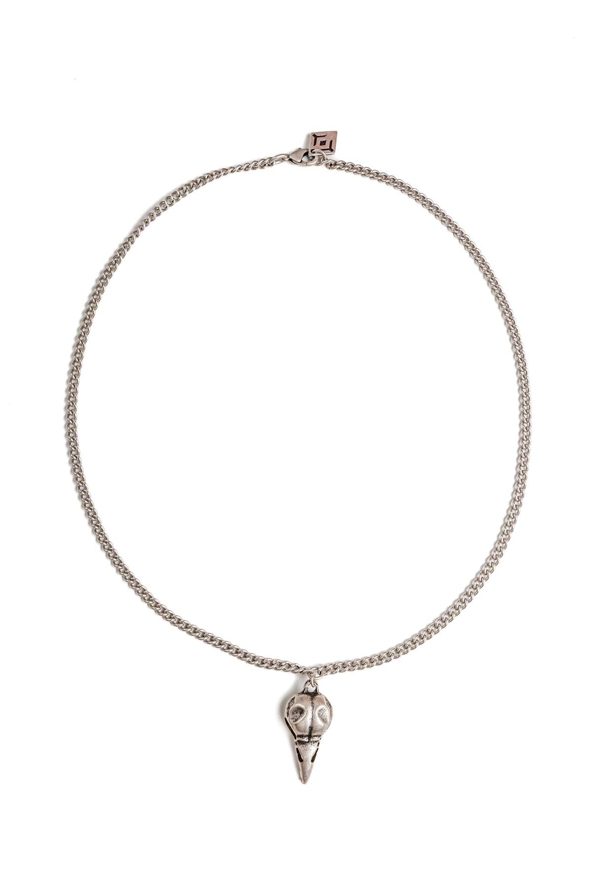 Collana con ciondolo a forma di teschio di corvo. La collana Crow la puoi indossare da sola o assieme ad altri gioielli Cryady. Per uomo e per donna. Ogni creazione Cryady è realizzata artigianalmente con dedizione e passione. I materiali utilizzati sono tutti certificati in rispetto delle normative vigenti CEE.
