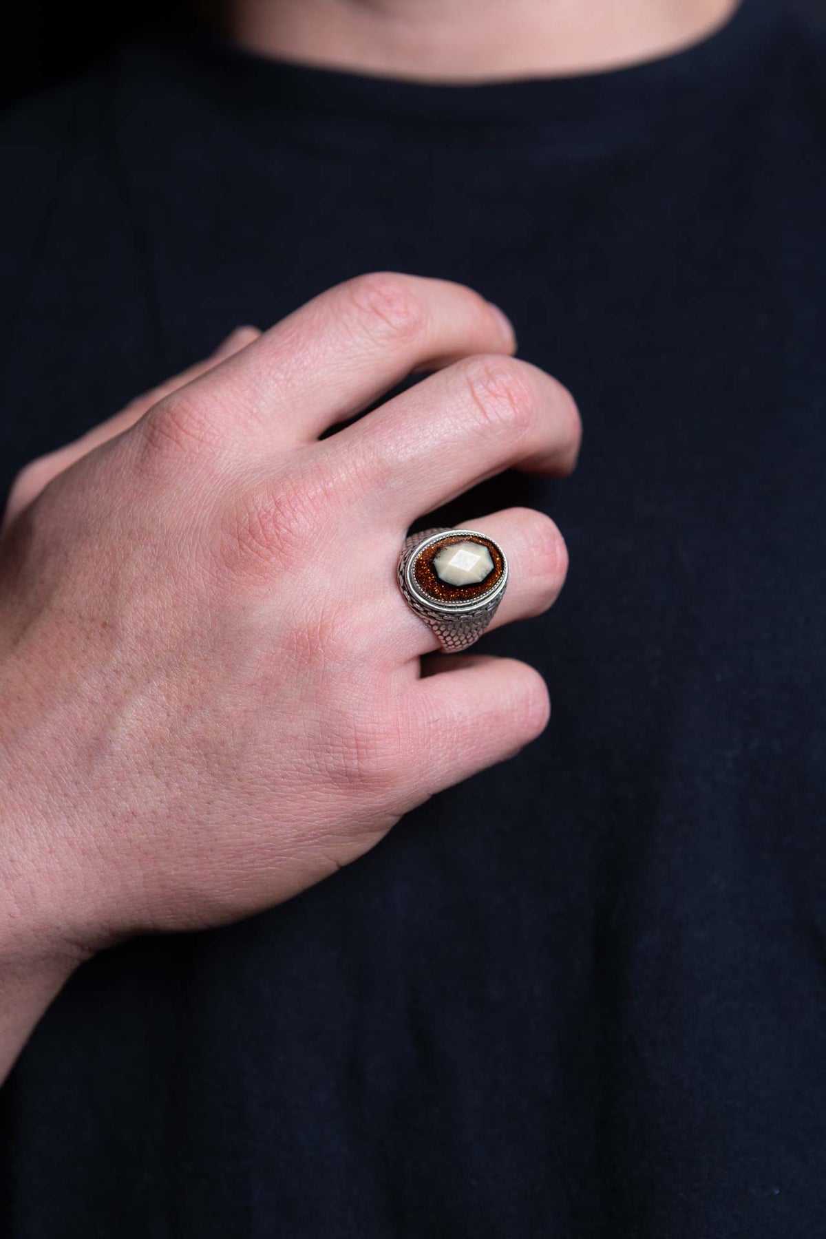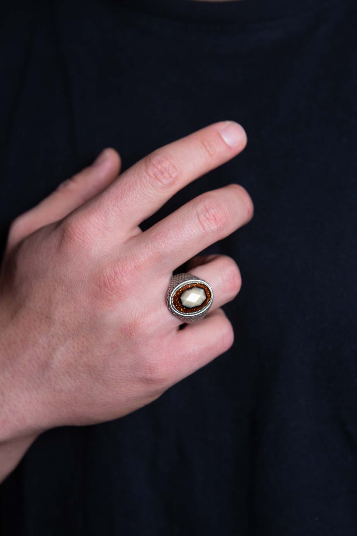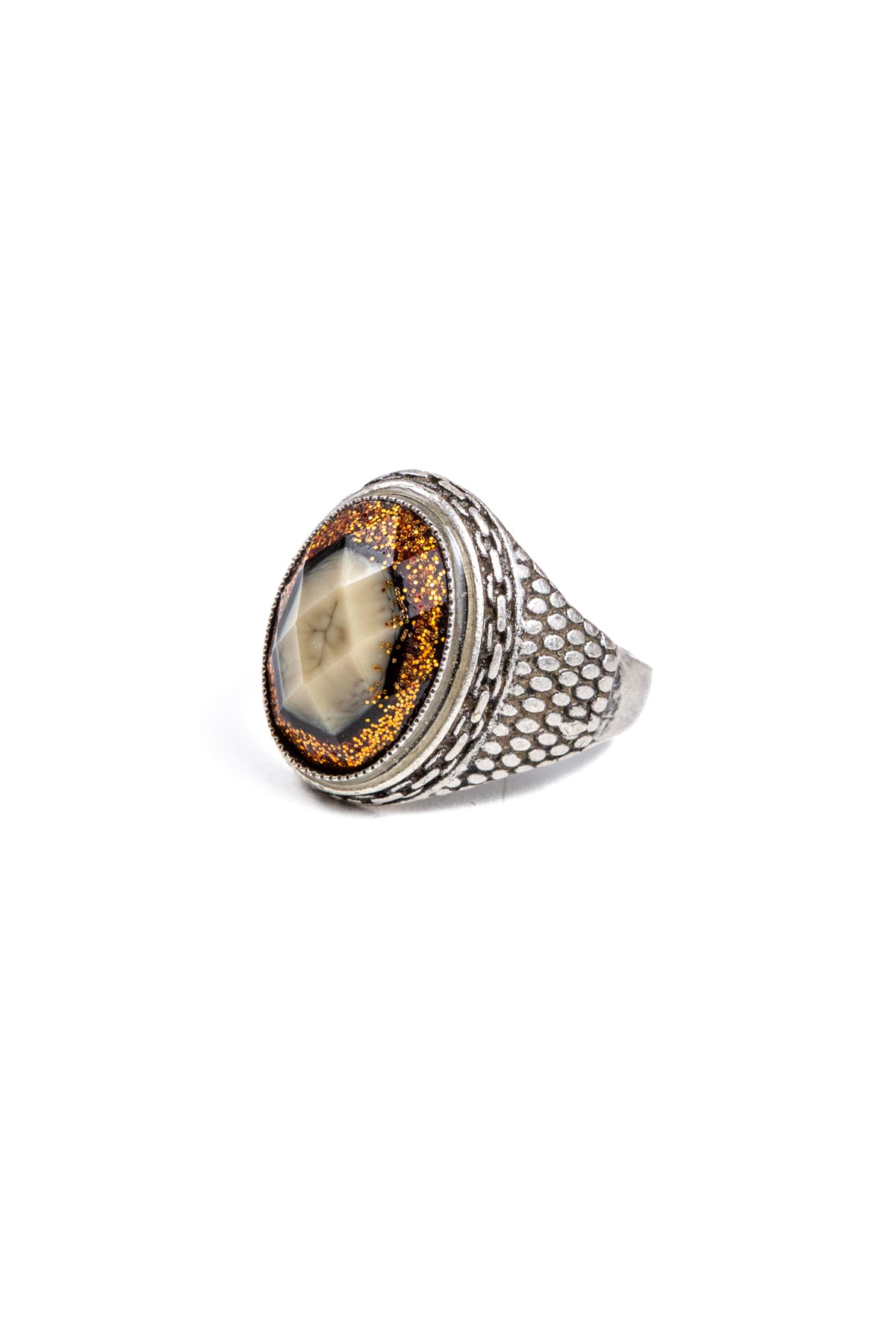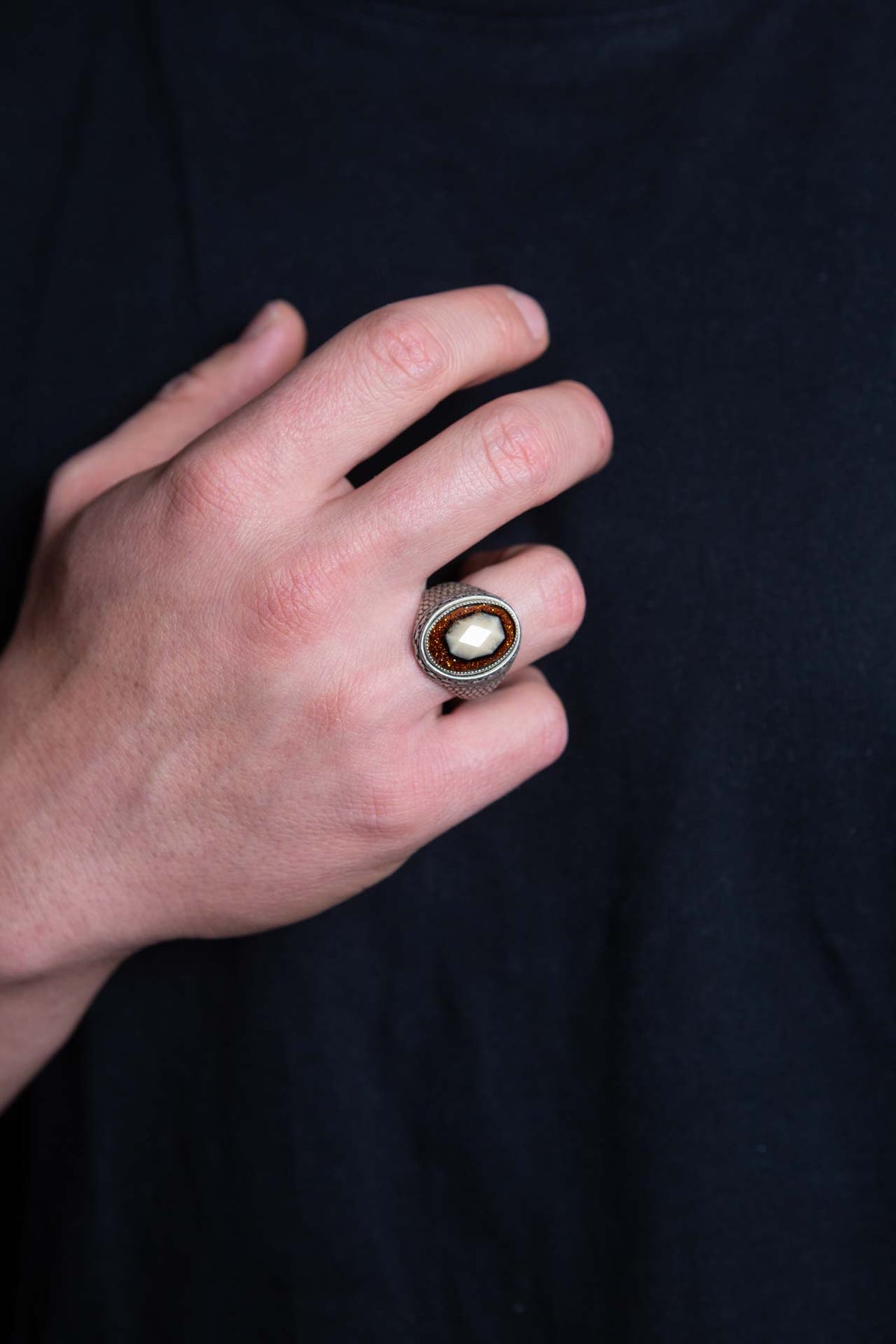 Blind Heart è un anello in lega seminaturale di zinco e alluminio, galvanizzato in argento brunito. Al centro si trova una pietra incastonata sfaccettata il cui contorno è dorato mentre al centro spicca il colore beige. L'anello Blind Heart lo puoi indossare da solo o assieme ad altre creazioni Cryady. Per uomo e per donna. Ogni creazione Cryady è realizzata artigianalmente con amore e passione, proprio per questo una non sarà mai perfettamente identica all’altra come se fosse un prodotto realizzato in serie.