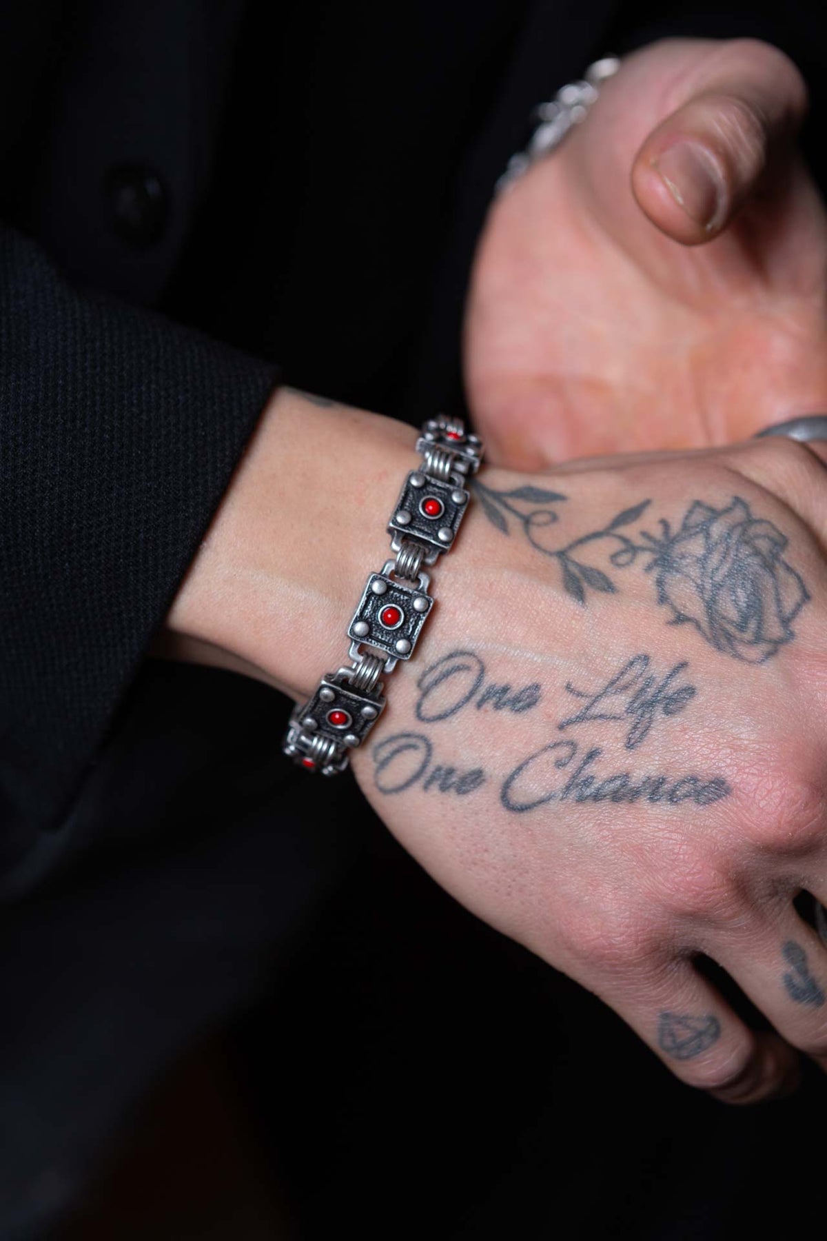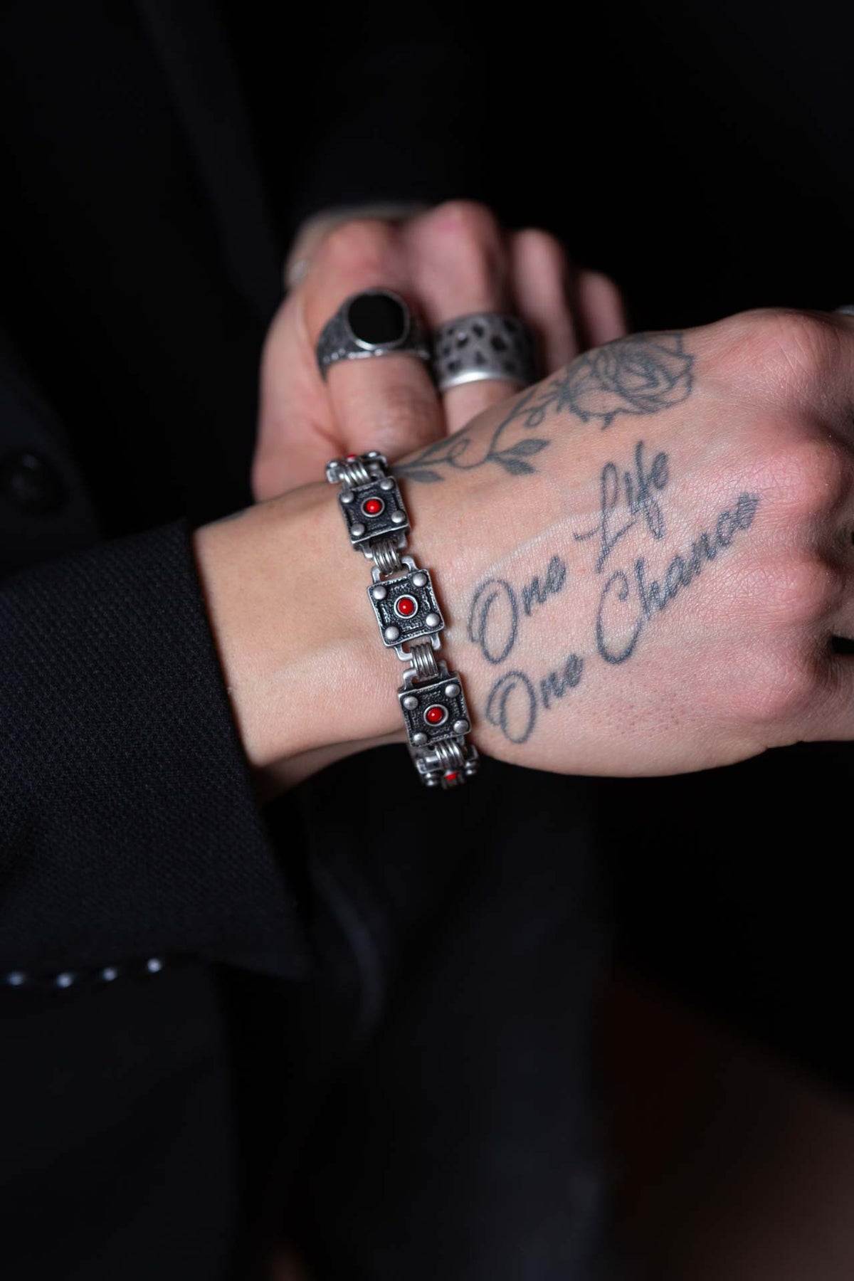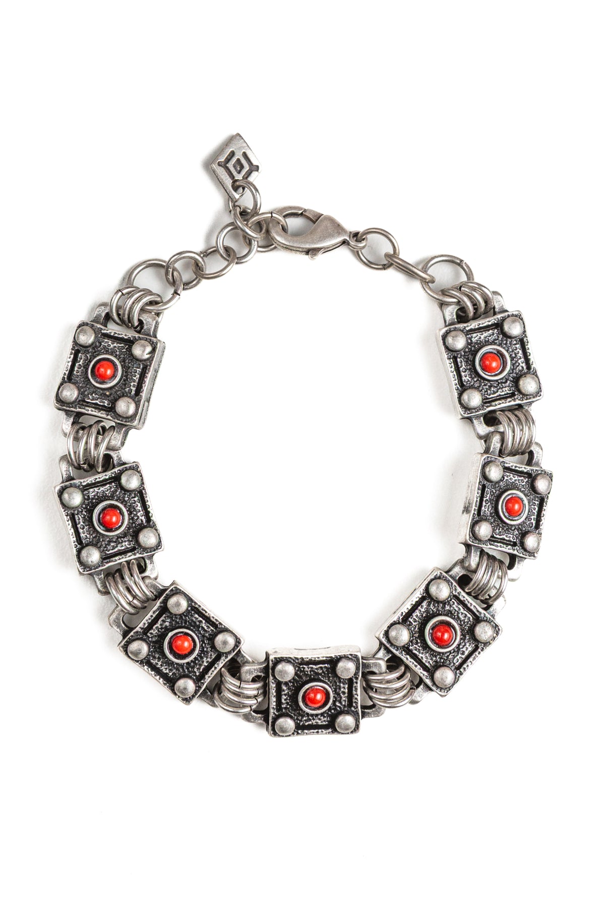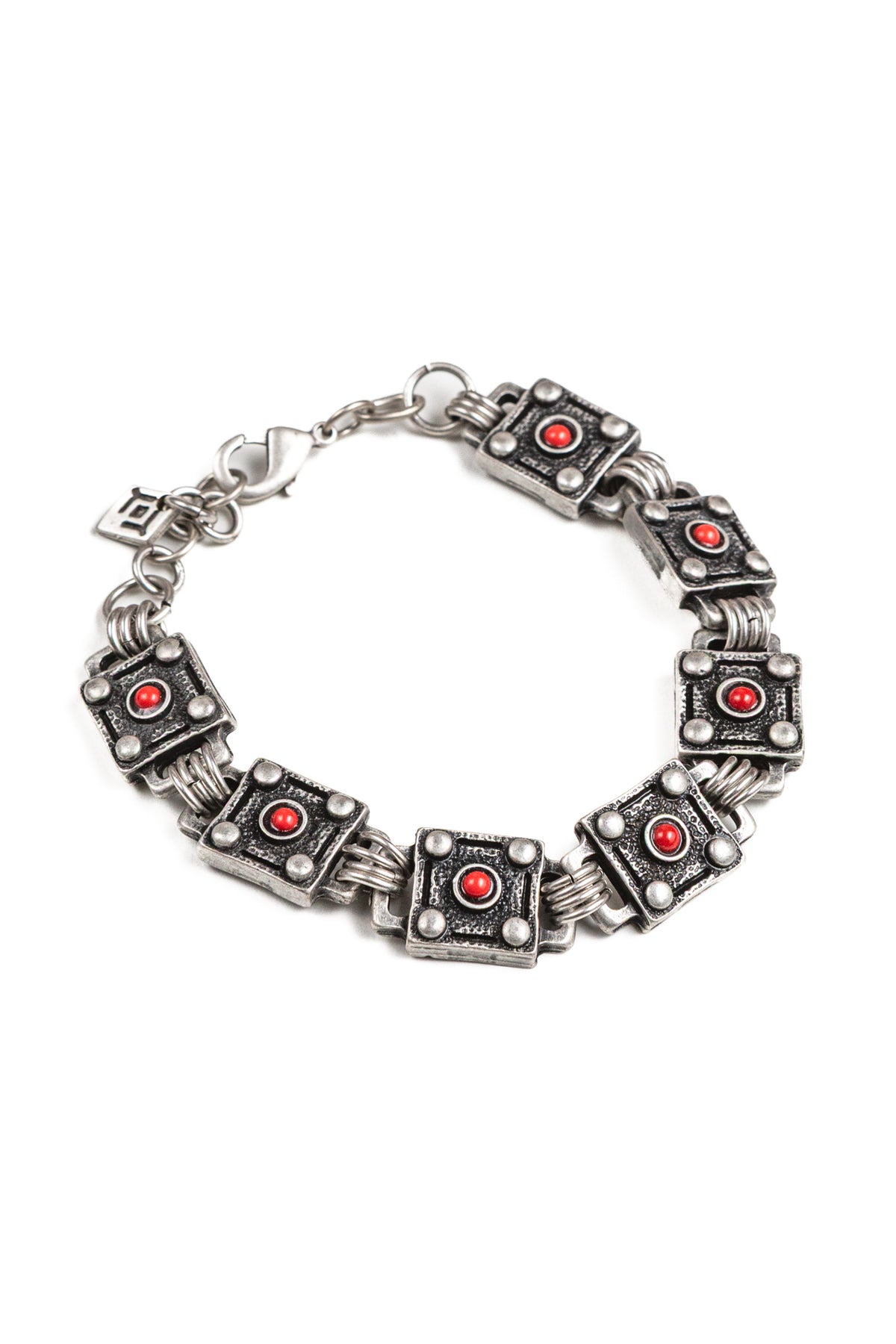 Il bracciale Viper Rosso deve la sua particolarità alle componenti quadrate realizzate con lavorazioni curate nel dettaglio. Al centro di ogni quadrato in lega di zinco e alluminio galvanizzato in argento brunito, c'è una piccola pietra in cristallo rosso. Il bracciale Viper Rosso è unisex come tutte le altre nostre creazioni, da indossare da solo o insieme ad altri gioielli Cryady. Ogni creazione Cryady è realizzata artigianalmente con amore e passione. I materiali utilizzati sono certificati in rispetto delle normative vigenti CEE.