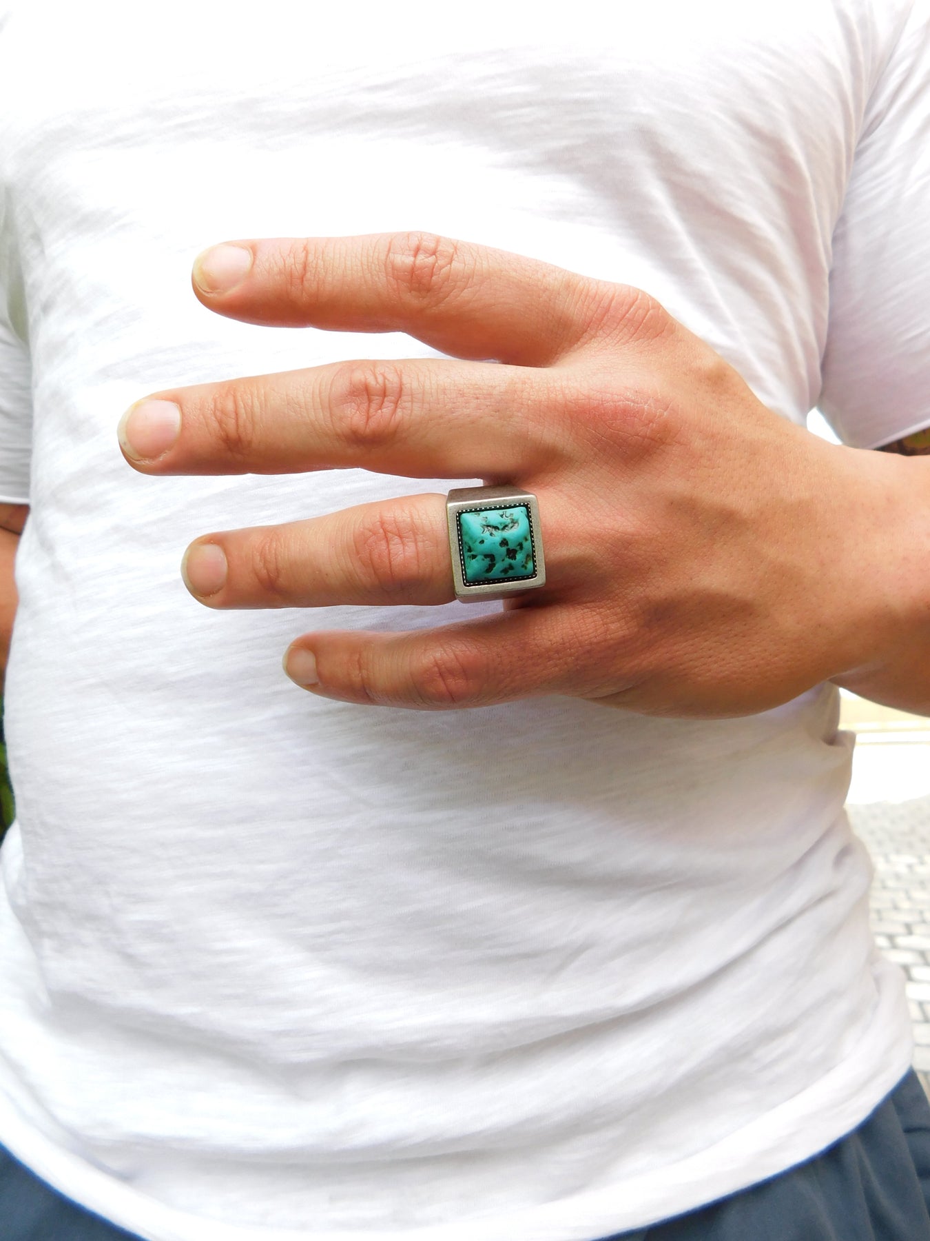 L'anello David è realizzato artigianalmente in lega seminaturale (zinco, magnesio, alluminio) rivestito in argento brunito anallergico. L'anello David deve la sua particolarità alla sua forma squadrata. Al centro spicca una pietra quadrata in cristallo opaco martellato. Lo puoi indossare da solo o assieme ad altri gioielli Cryady. Per uomo e per donna. Ogni creazione Cryady è realizzata artigianalmente con amore e passione, proprio per questo una non sarà mai perfettamente identica all’altra come se fosse un prodotto realizzato in serie.