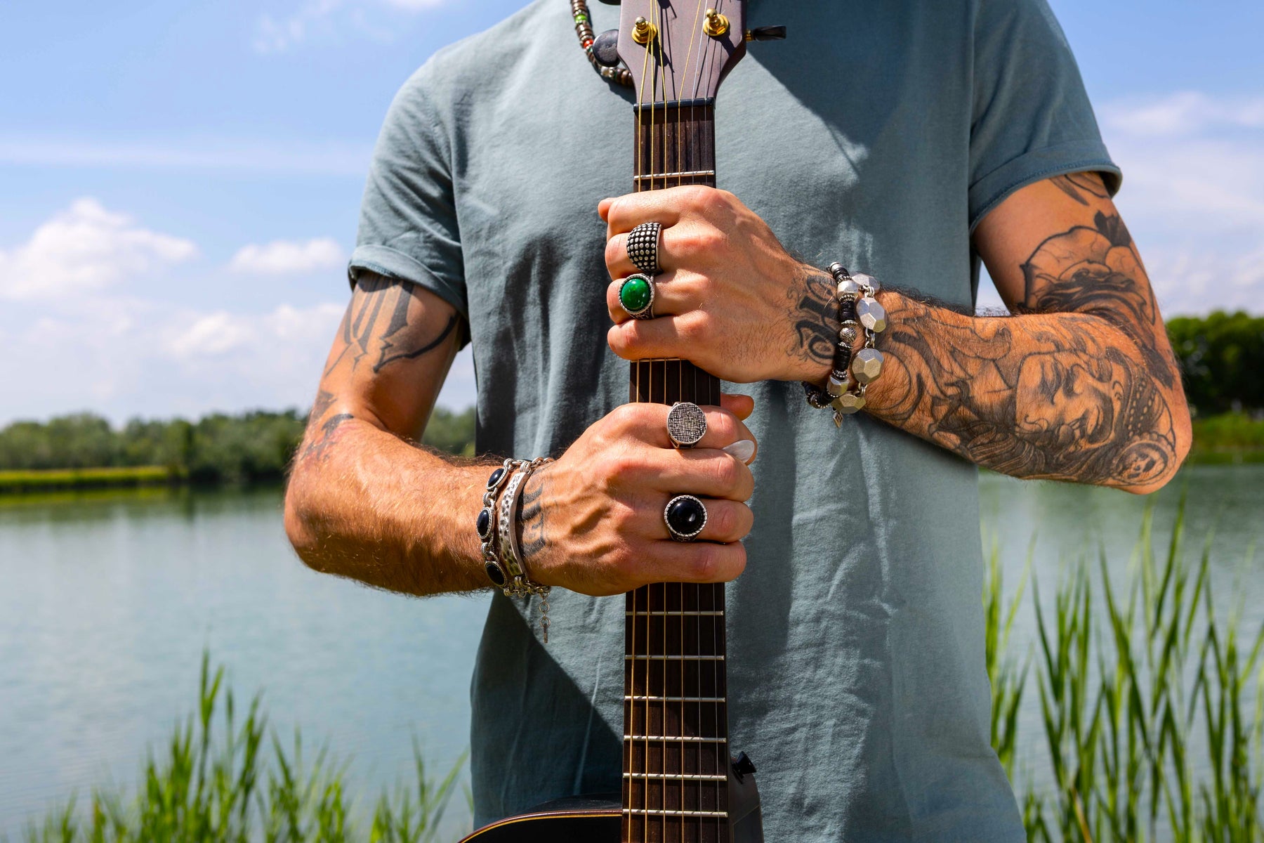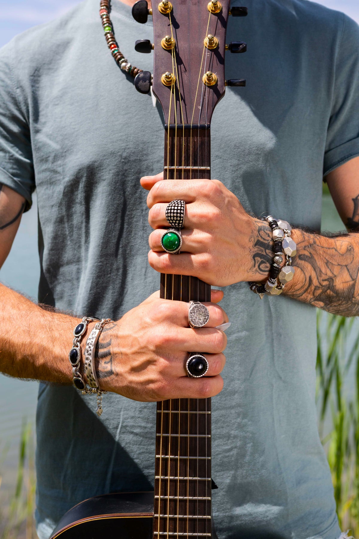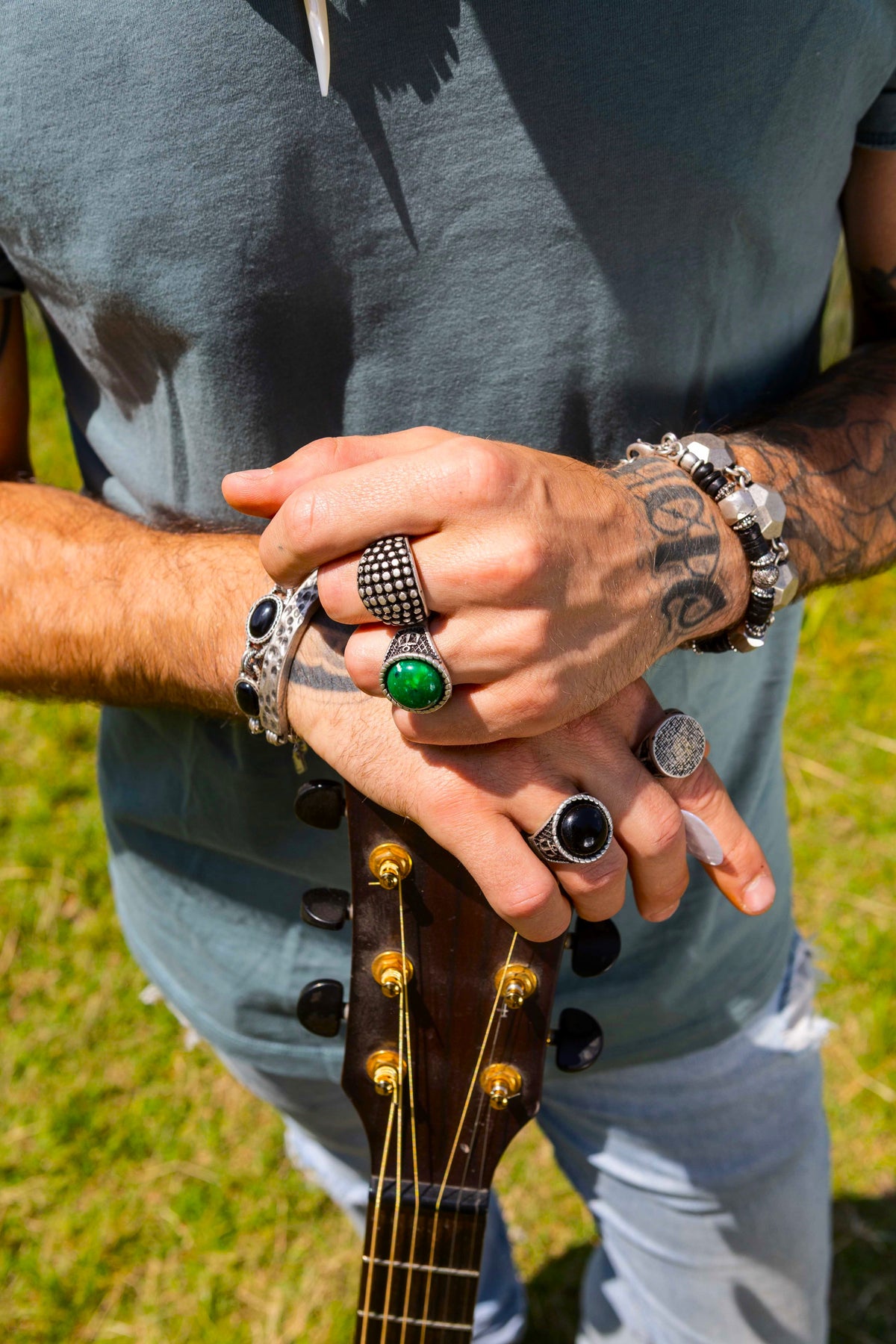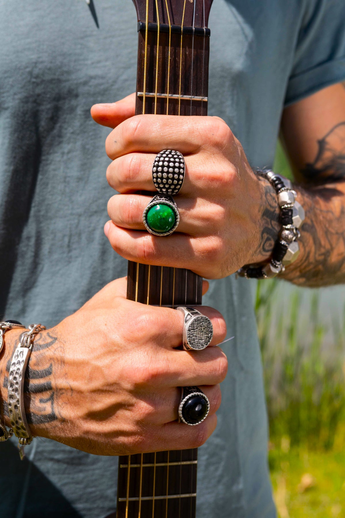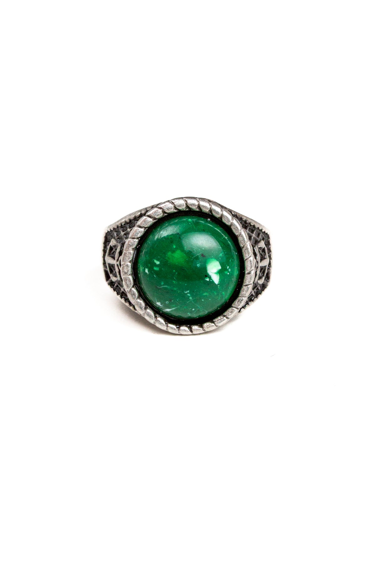 L'anello Yari è realizzato artigianalmente in lega seminaturale (zinco, magnesio, alluminio) rivestito in argento brunito anallergico. Al centro spicca una pietra tonda verde in 12 millimetri con piccole venature bianche. L'anello Yari lo puoi indossare da solo o assieme ad altri gioielli Cryady. Per uomo e per donna. Ogni creazione Cryady è realizzata artigianalmente con amore e passione, proprio per questo una non sarà mai perfettamente identica all’altra come se fosse un prodotto realizzato in serie.