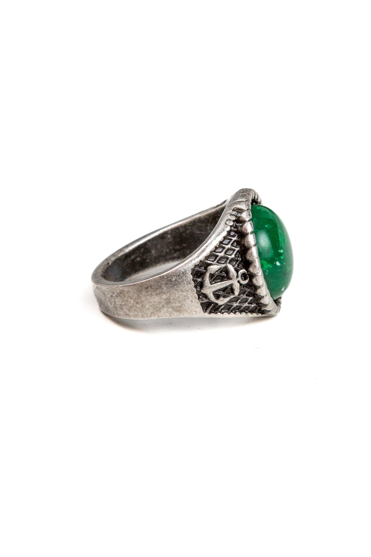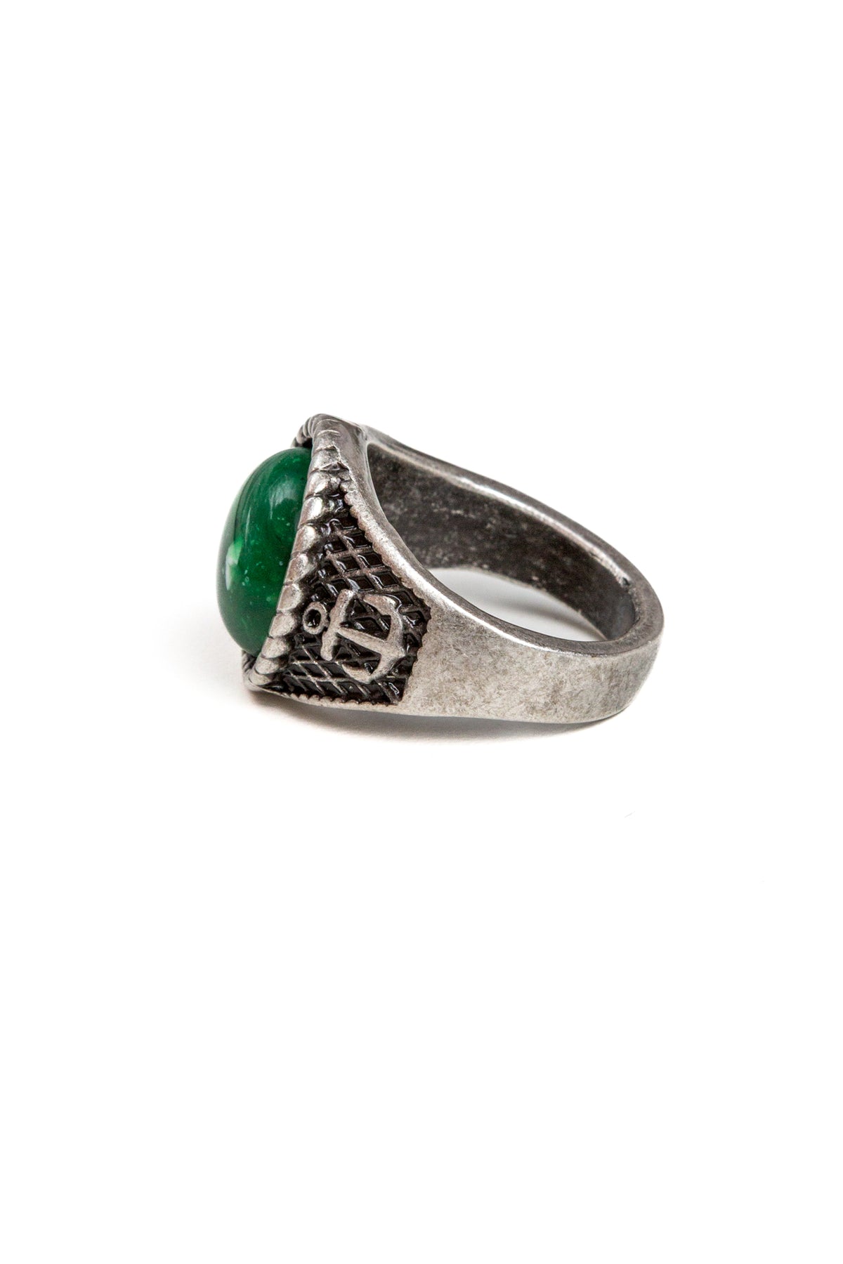 Materiale: lega di zinco e alluminio, cristallo verde.