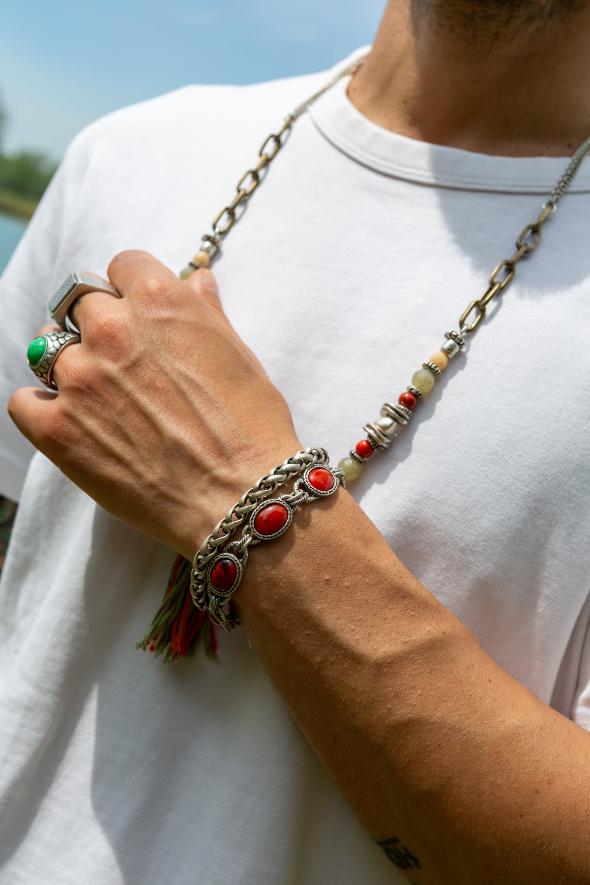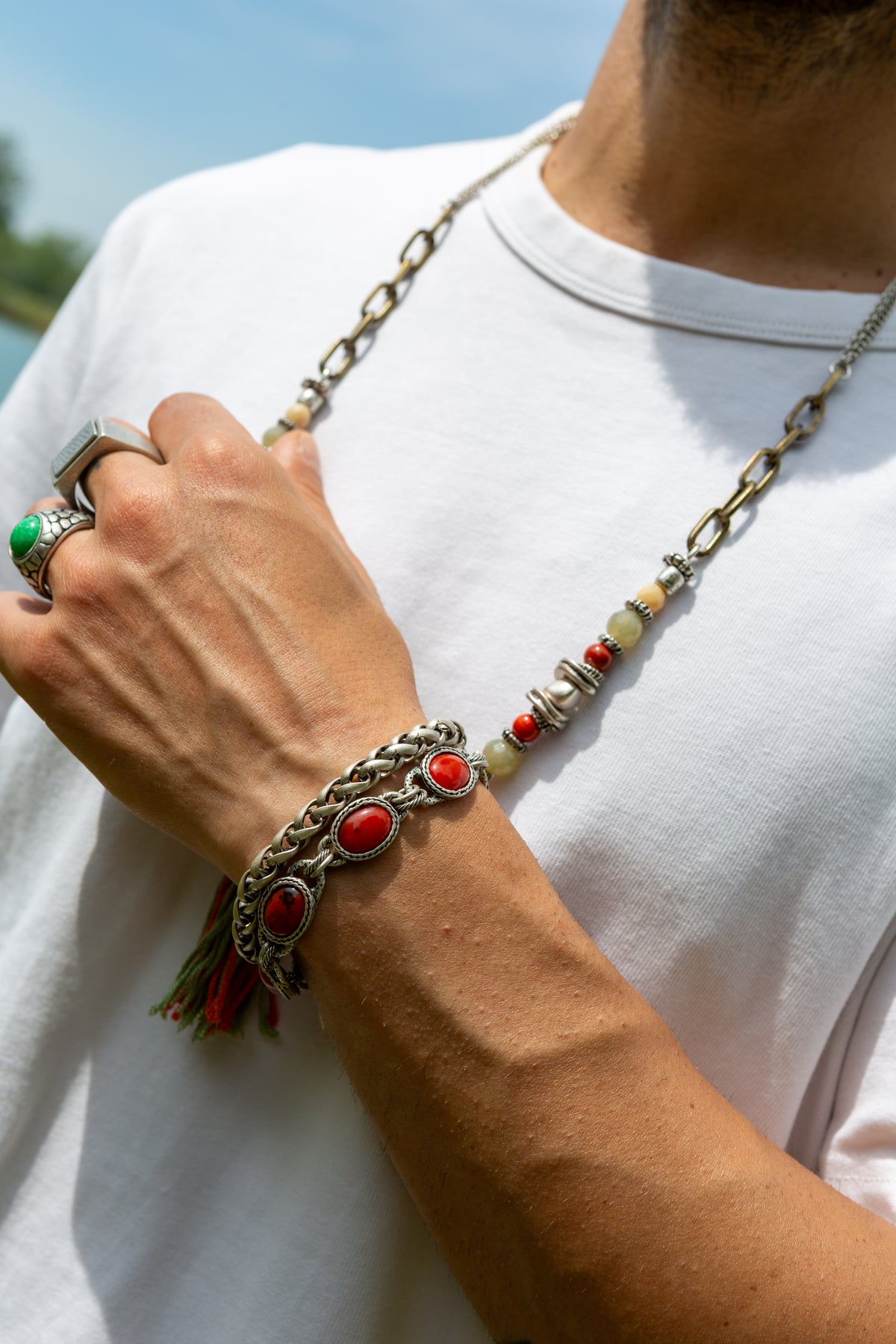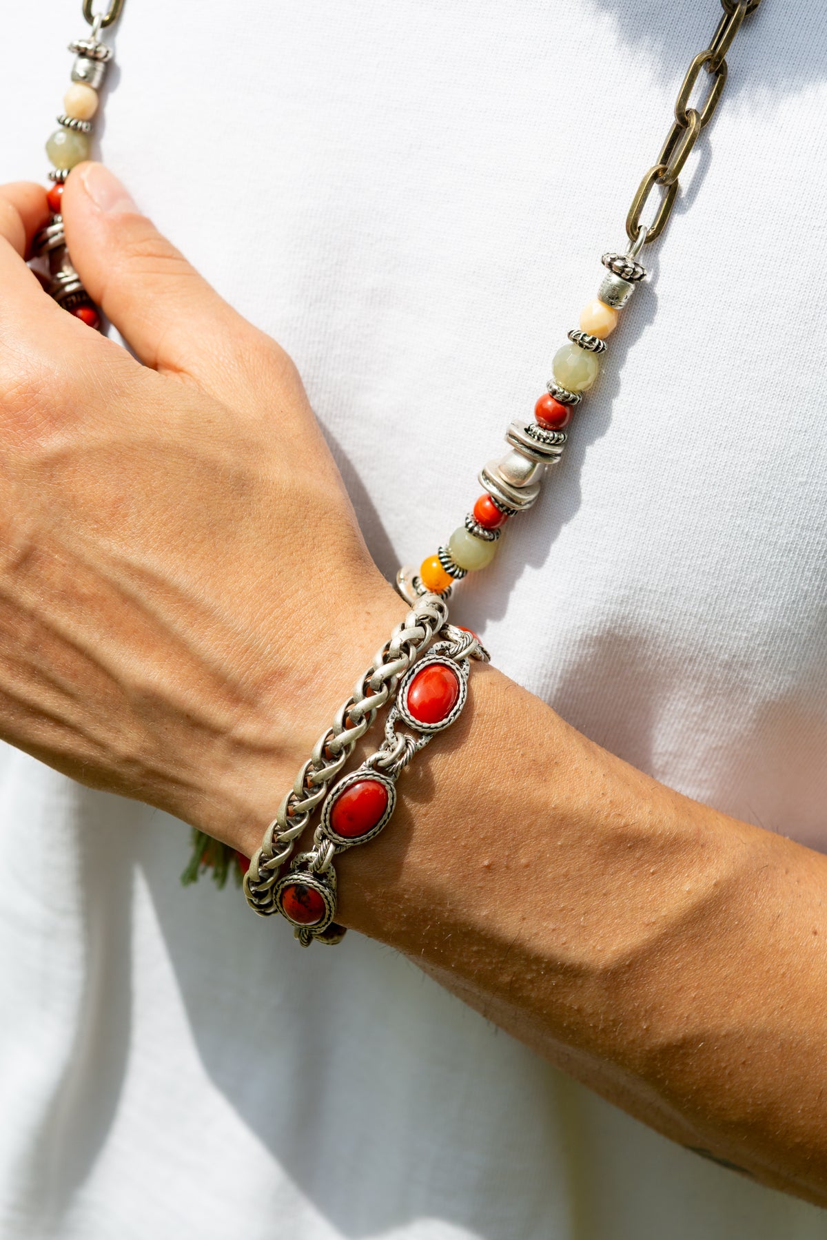 Il bracciale Andalusia deve la sua particolarità alle componenti ovali realizzate a mano al cui centro è incastonata una pietra concentrica in cristallo rosso ovale con piccole venature. Il bracciale Andalusia è unisex come tutte le altre nostre creazioni, da indossare da solo o insieme ad altri gioielli Cryady. Ogni creazione Cryady è realizzata artigianalmente con amore e passione. I materiali utilizzati sono certificati in rispetto delle normative vigenti CEE.