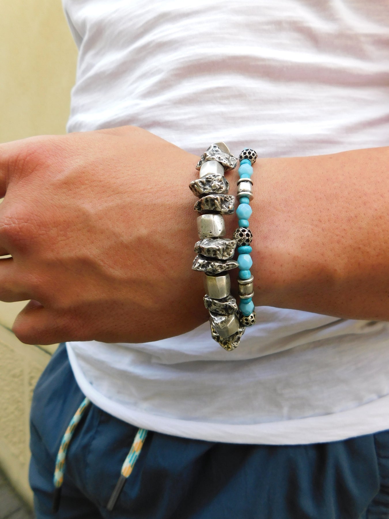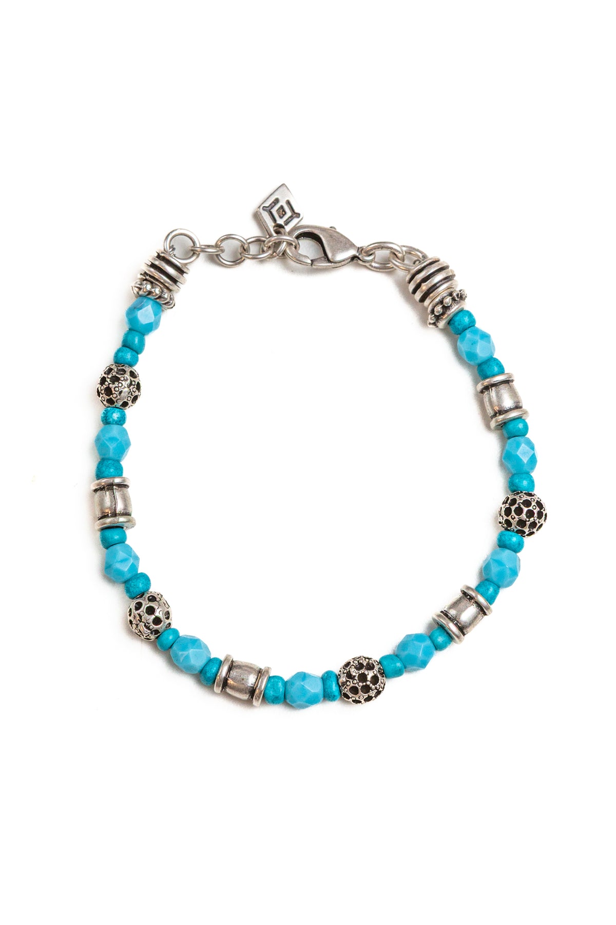 Il bracciale Antigua è realizzato con cristalli turchesi lucidi sfaccettati e cristalli più piccoli turchesi opachi, alternati a componenti in lega di zinco e alluminio rivestito in argento antico anallergico. Il bracciale Antigua è unisex come tutte le altre nostre creazioni, da indossare da solo o insieme ad altri gioielli Cryady. Ogni creazione Cryady è realizzata artigianalmente con amore e passione. I materiali utilizzati sono certificati in rispetto delle normative vigenti CEE.