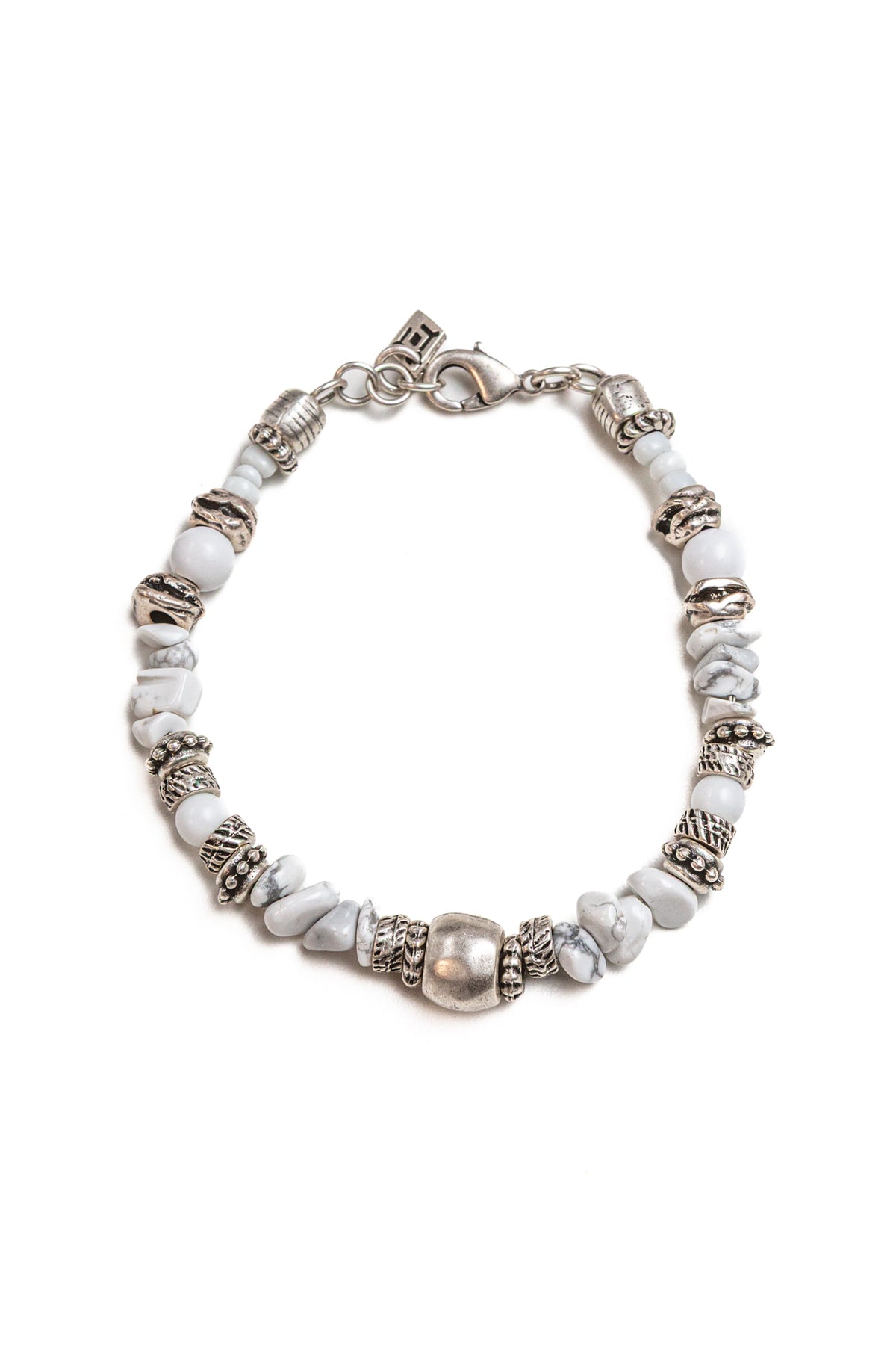Il bracciale Blanco è realizzato con howlite bianca naturale, sfere in cristallo bianco opache e componenti in  lega di zinco e alluminio rivestito in argento antico anallergico. Il bracciale Blanco è unisex come tutte le altre nostre creazioni, da indossare da solo o insieme ad altri gioielli Cryady. Ogni creazione Cryady è realizzata artigianalmente con amore e passione. I materiali utilizzati sono certificati in rispetto delle normative vigenti CEE.
