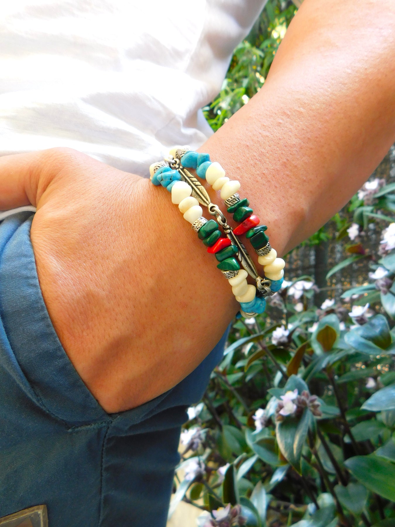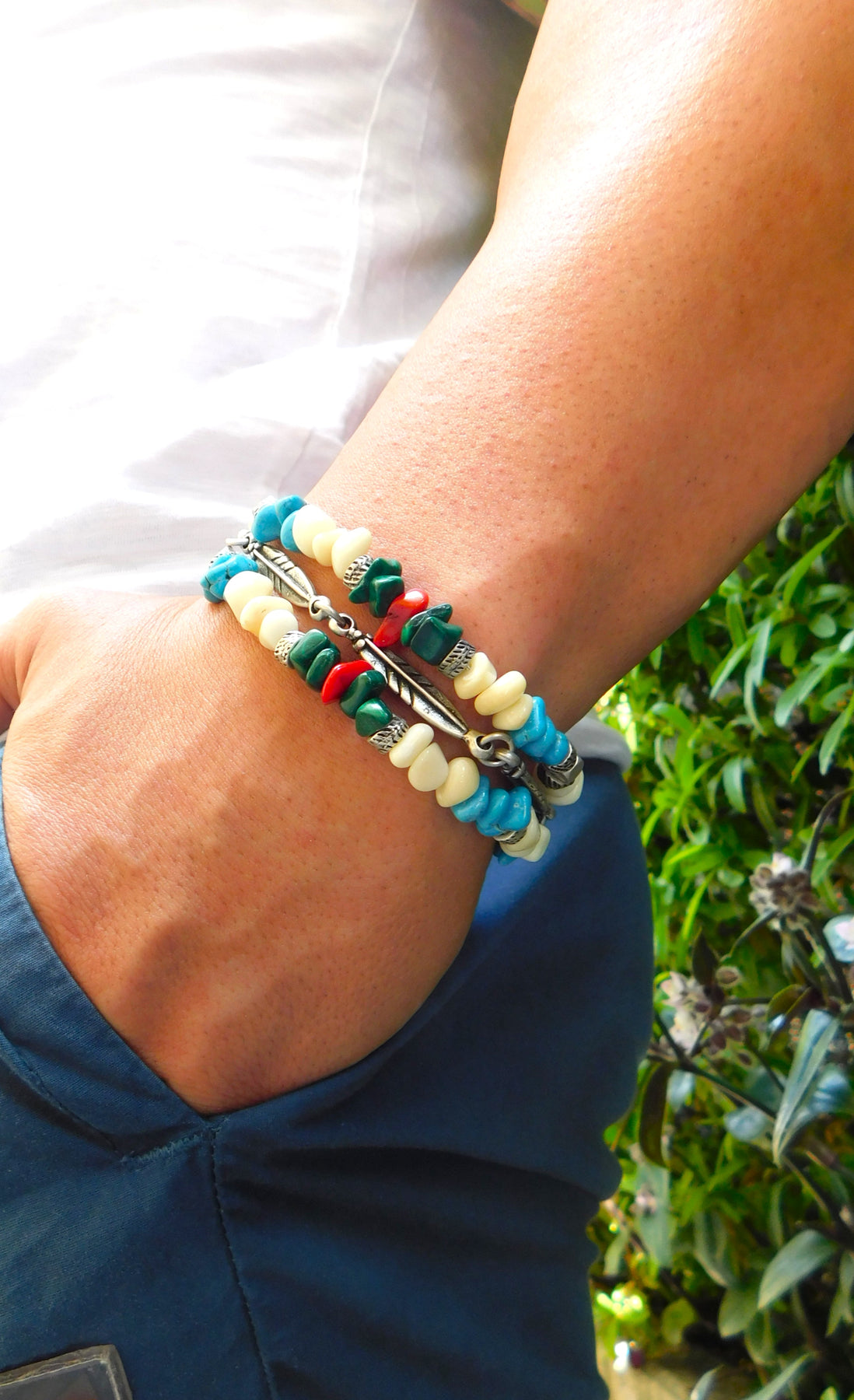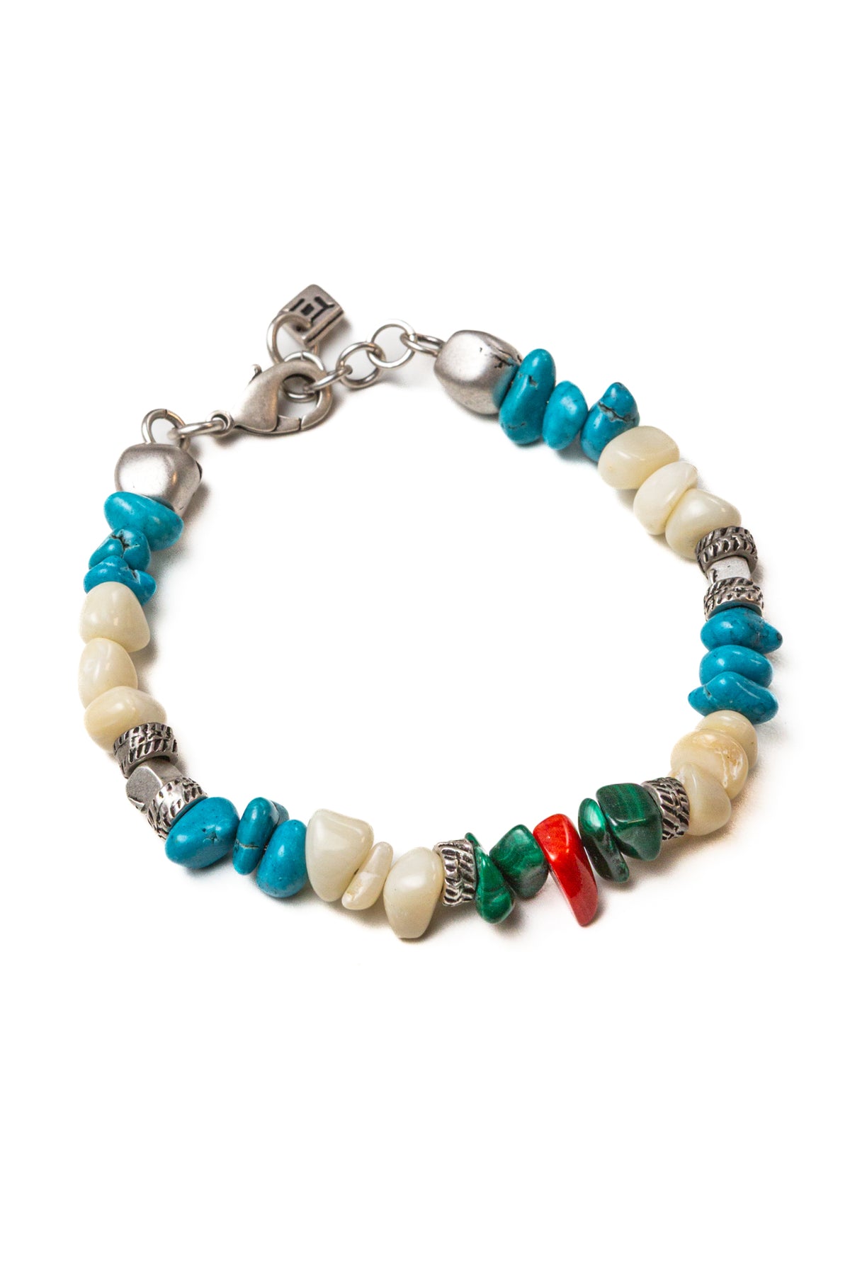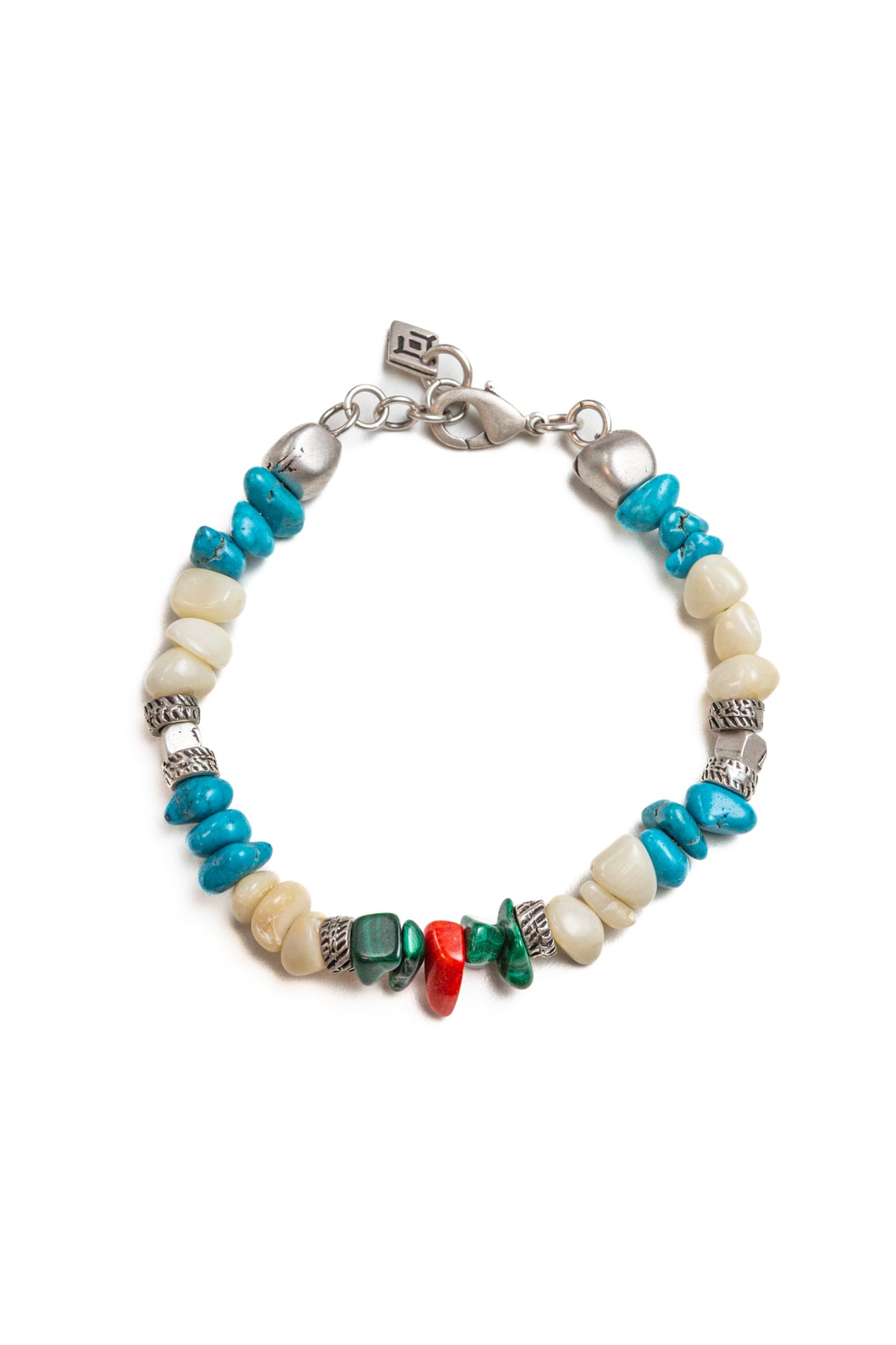 Il bracciale Kos è realizzato con corallo bianco, turchese, malachite verde, corallo rosso centrale e componenti in  lega di zinco e alluminio rivestito in argento antico anallergico. Il bracciale Kos è unisex come tutte le altre nostre creazioni, da indossare da solo o insieme ad altri gioielli Cryady. Ogni creazione Cryady è realizzata artigianalmente con amore e passione. I materiali utilizzati sono certificati in rispetto delle normative vigenti CEE.