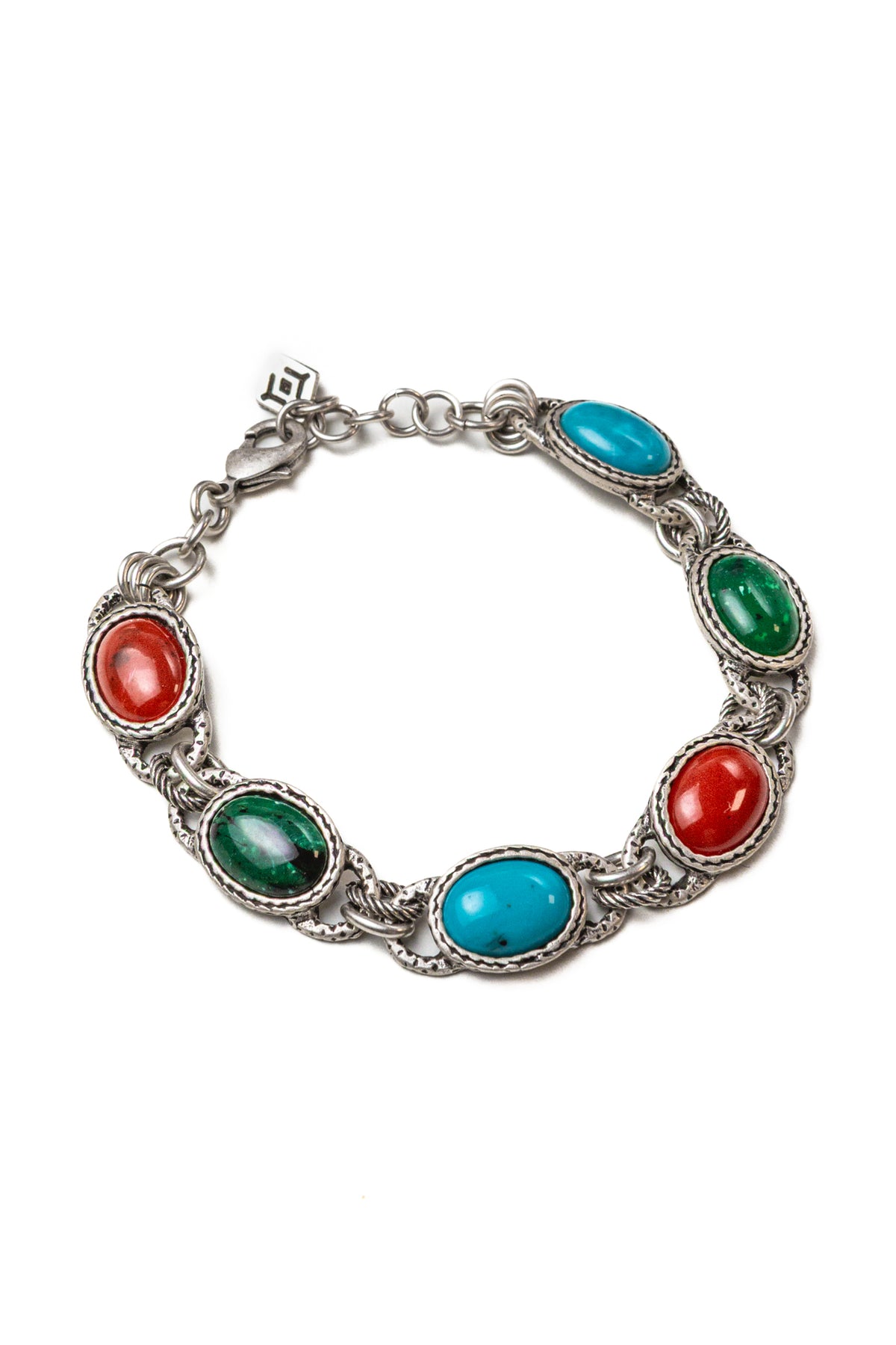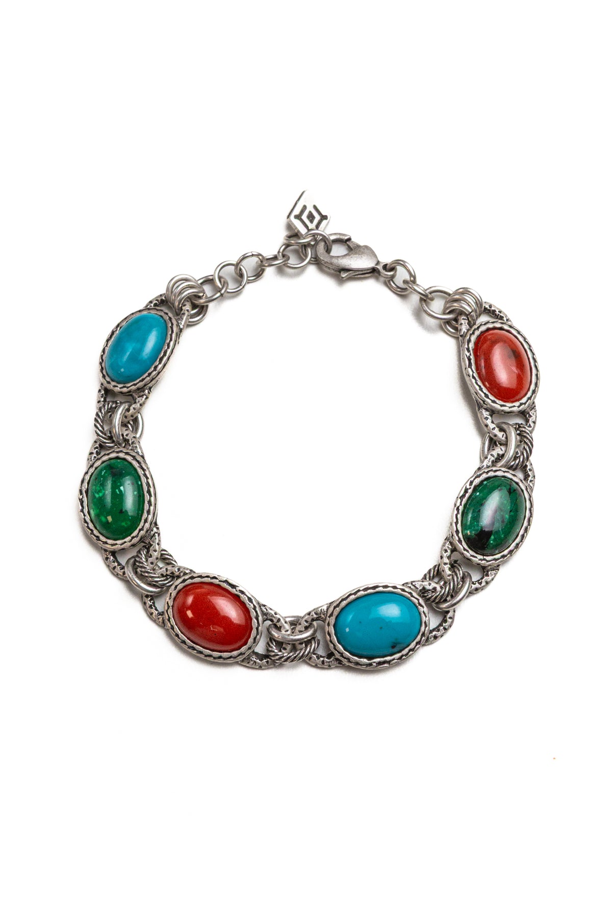 Il bracciale Malaga deve la sua particolarità alle componenti ovali realizzate a mano al cui centro sono incastonare pietre in cristallo nei colori turchese, verde e rosso. Il bracciale Malaga è unisex come tutte le altre nostre creazioni, da indossare da solo o insieme ad altri gioielli Cryady. Ogni creazione Cryady è realizzata artigianalmente con amore e passione. I materiali utilizzati sono certificati in rispetto delle normative vigenti CEE.