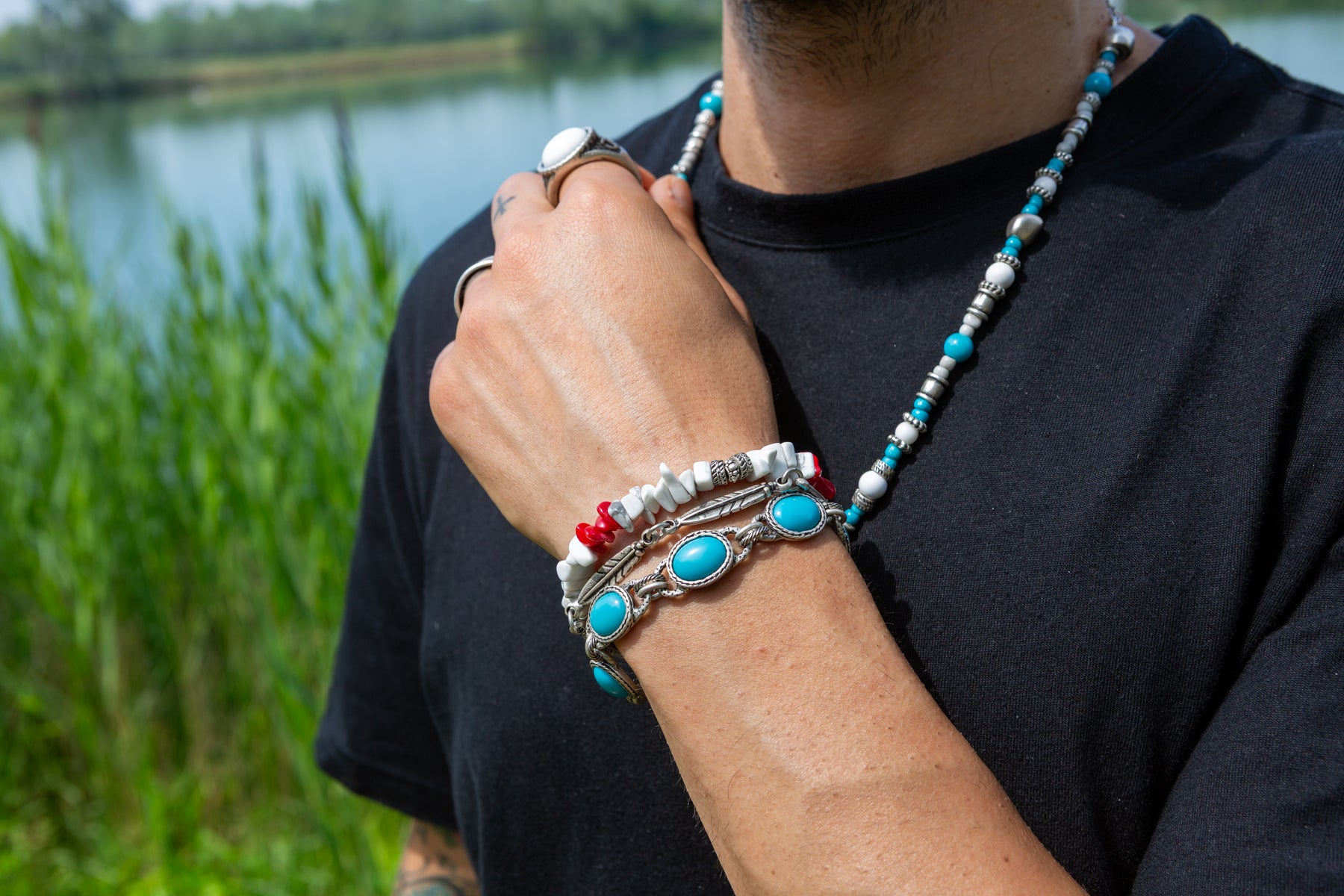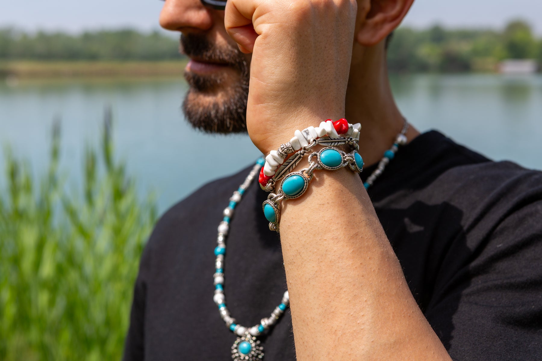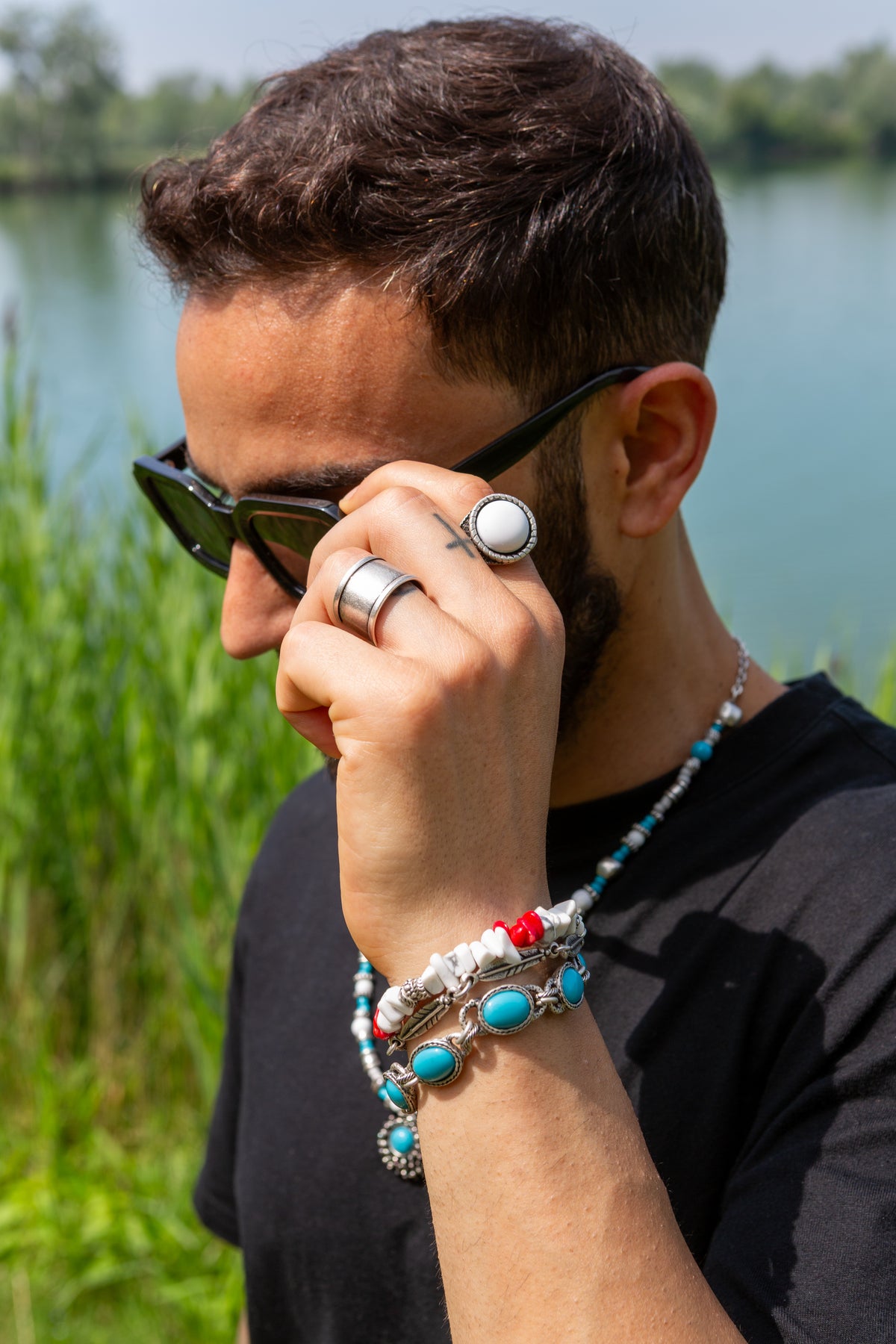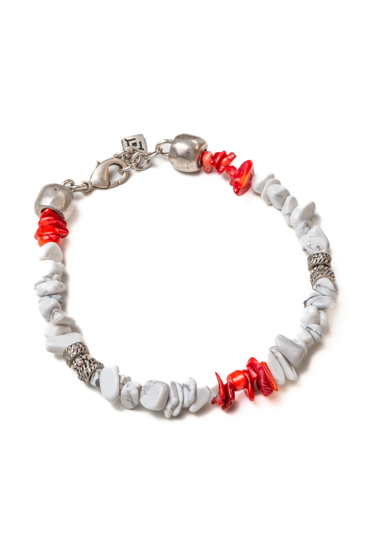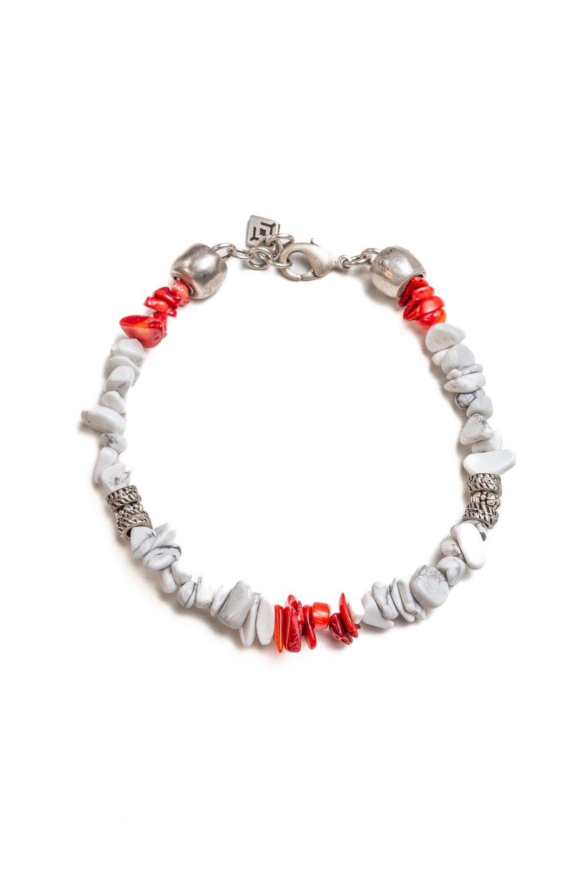 Il bracciale Niros è realizzato con howlite bianca, corallo rosso e componenti in  lega di zinco e alluminio rivestito in argento antico anallergico. Il bracciale Nisiros è unisex come tutte le altre nostre creazioni, da indossare da solo o insieme ad altri gioielli Cryady. Ogni creazione Cryady è realizzata artigianalmente con amore e passione. I materiali utilizzati sono certificati in rispetto delle normative vigenti CEE.