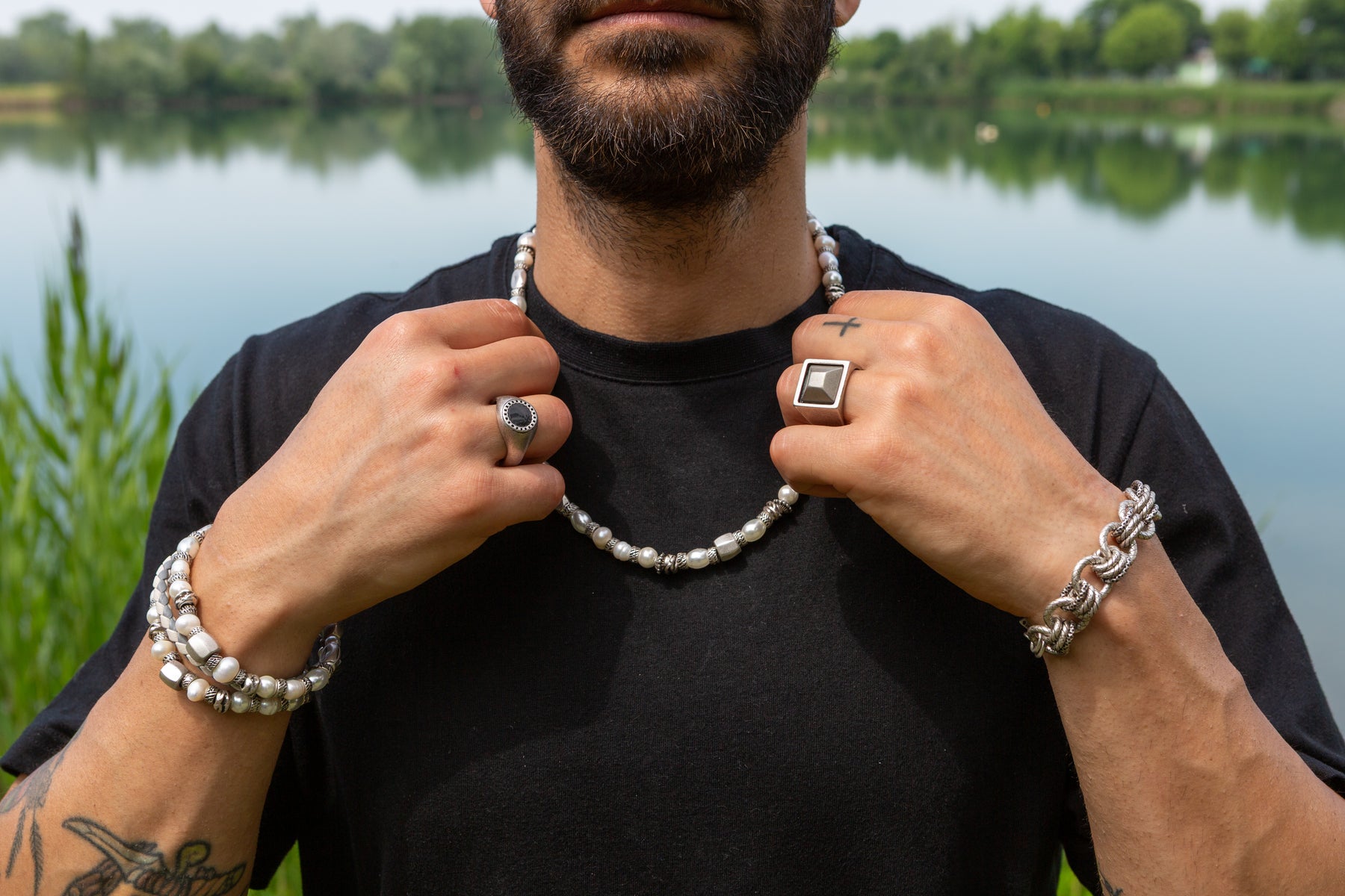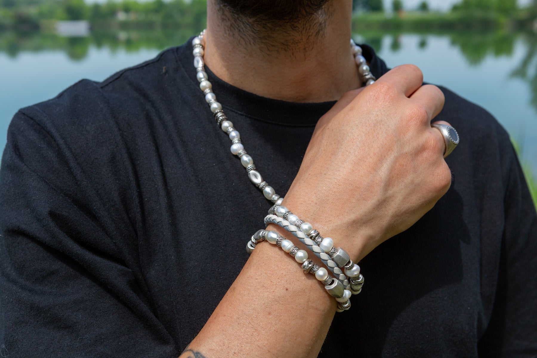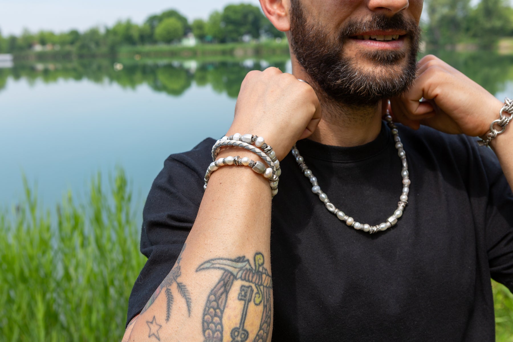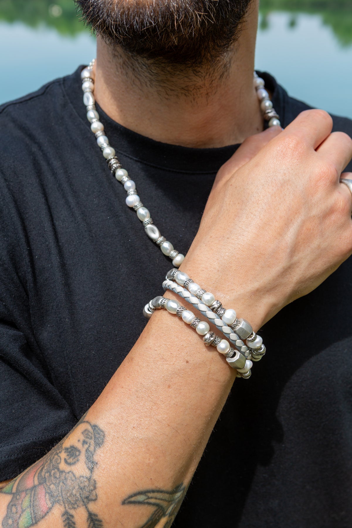 Il bracciale Santorini è realizzato con perle naturali, cristalli perlati e componenti in lega di zinco e alluminio rivestito in argento antico anallergico. Il bracciale Santorini è unisex come tutte le altre nostre creazioni, da indossare da solo o insieme ad altri gioielli Cryady. Ogni creazione Cryady è realizzata artigianalmente con amore e passione. I materiali utilizzati sono certificati in rispetto delle normative vigenti CEE.