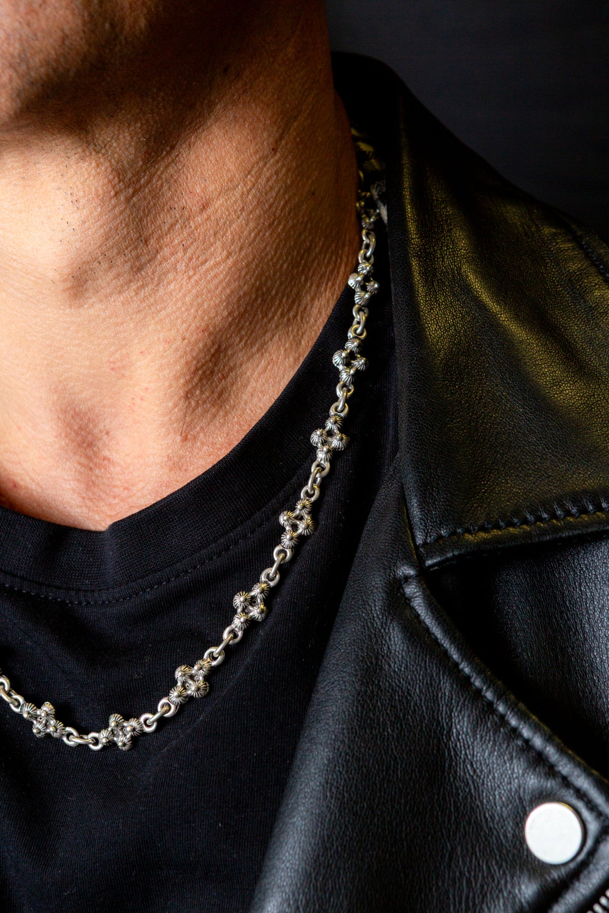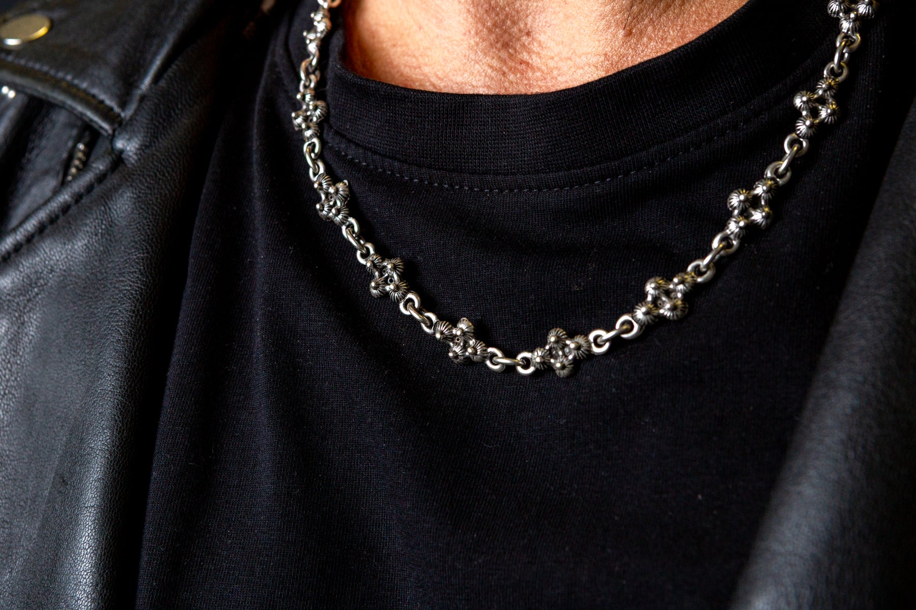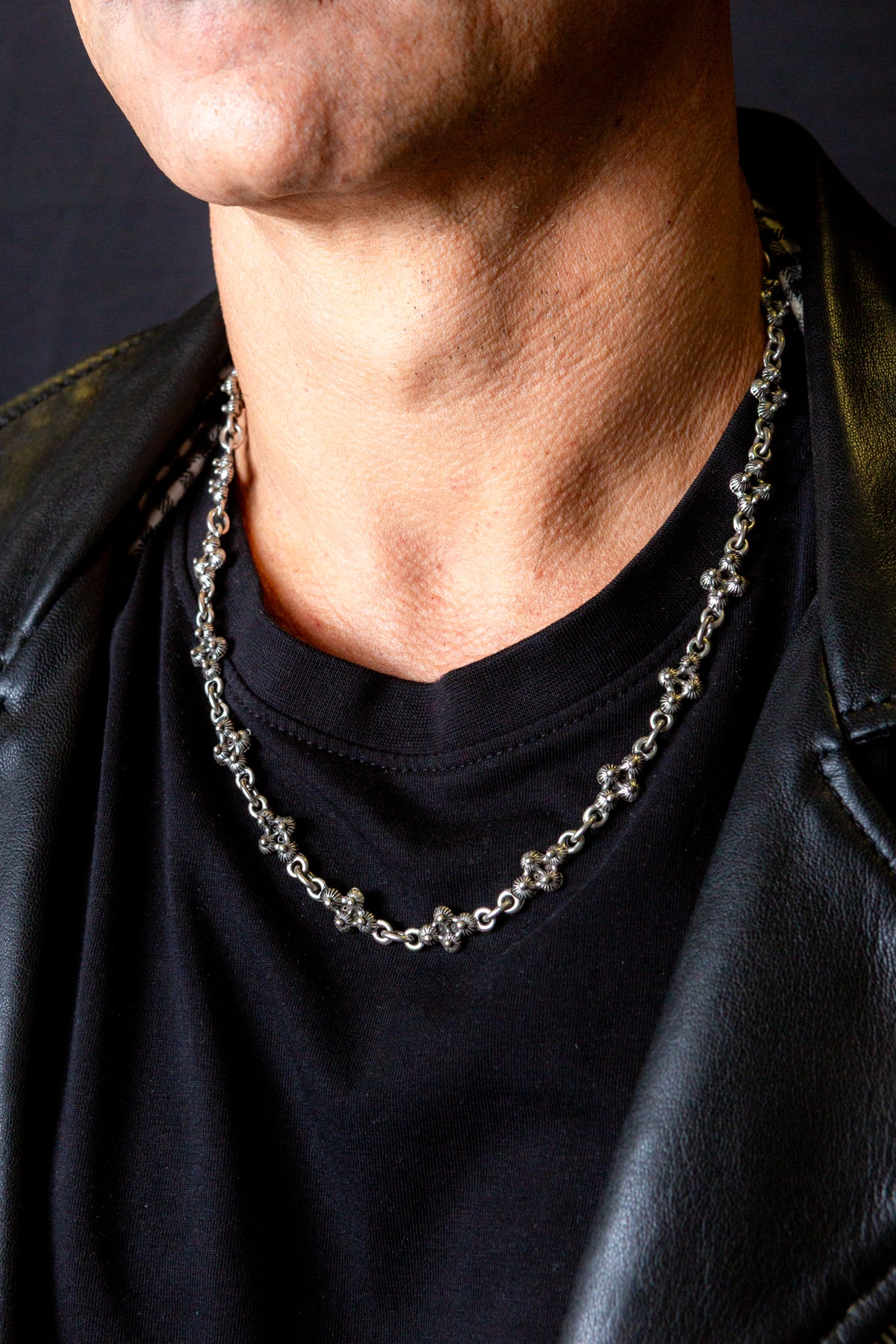 "King" è una collana realizzata con componenti in lega seminaturale (zinco, alluminio) e ottone. Il rivestimento è in argento brunito anallergico. La collana King la puoi indossare da sola o assieme ad altri gioielli Cryady. Per uomo e per donna. Ogni creazione Cryady è realizzata artigianalmente con dedizione e passione.
