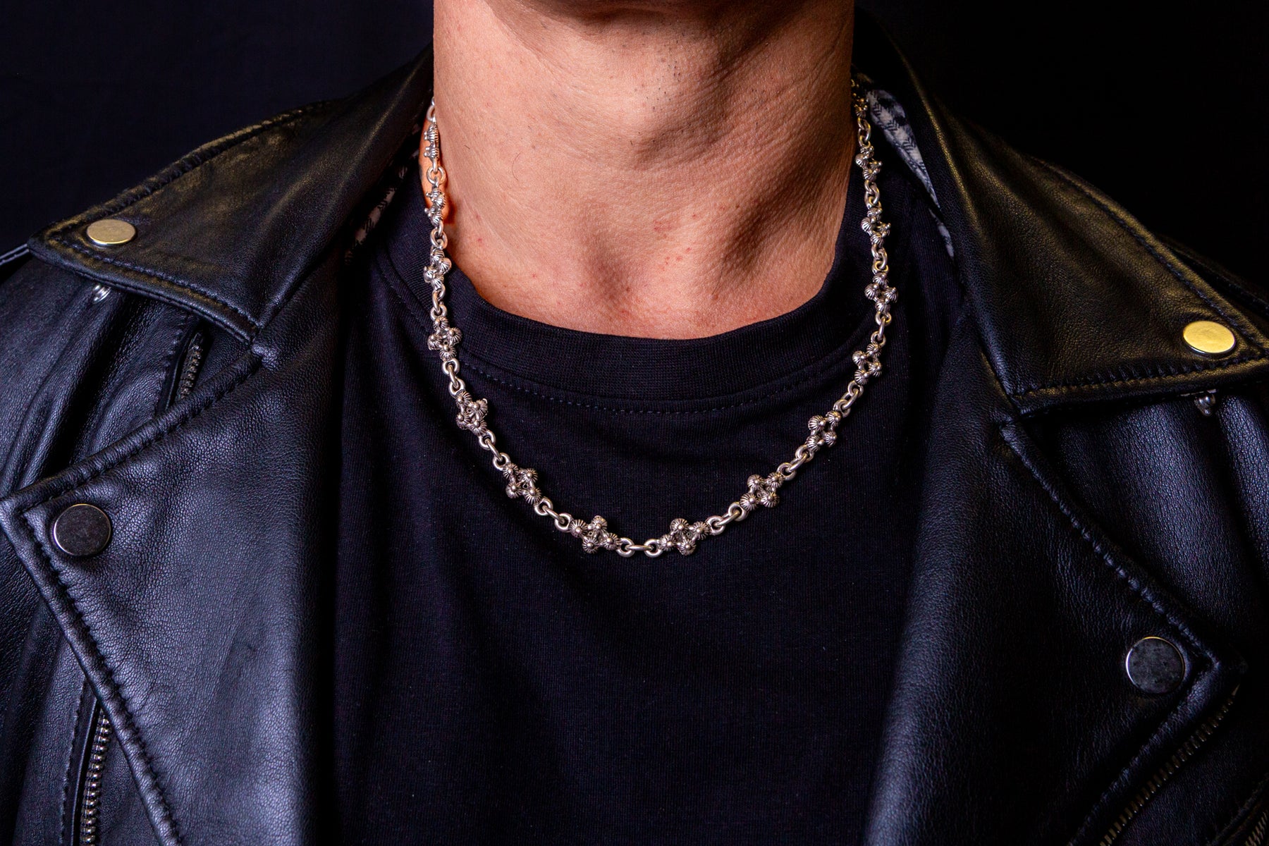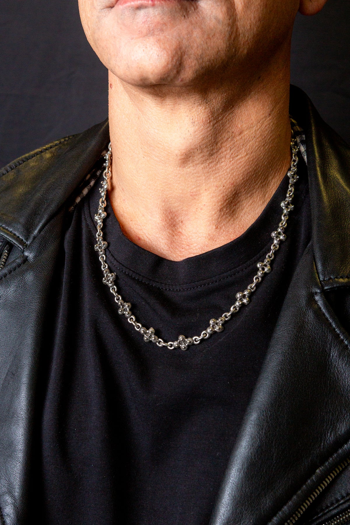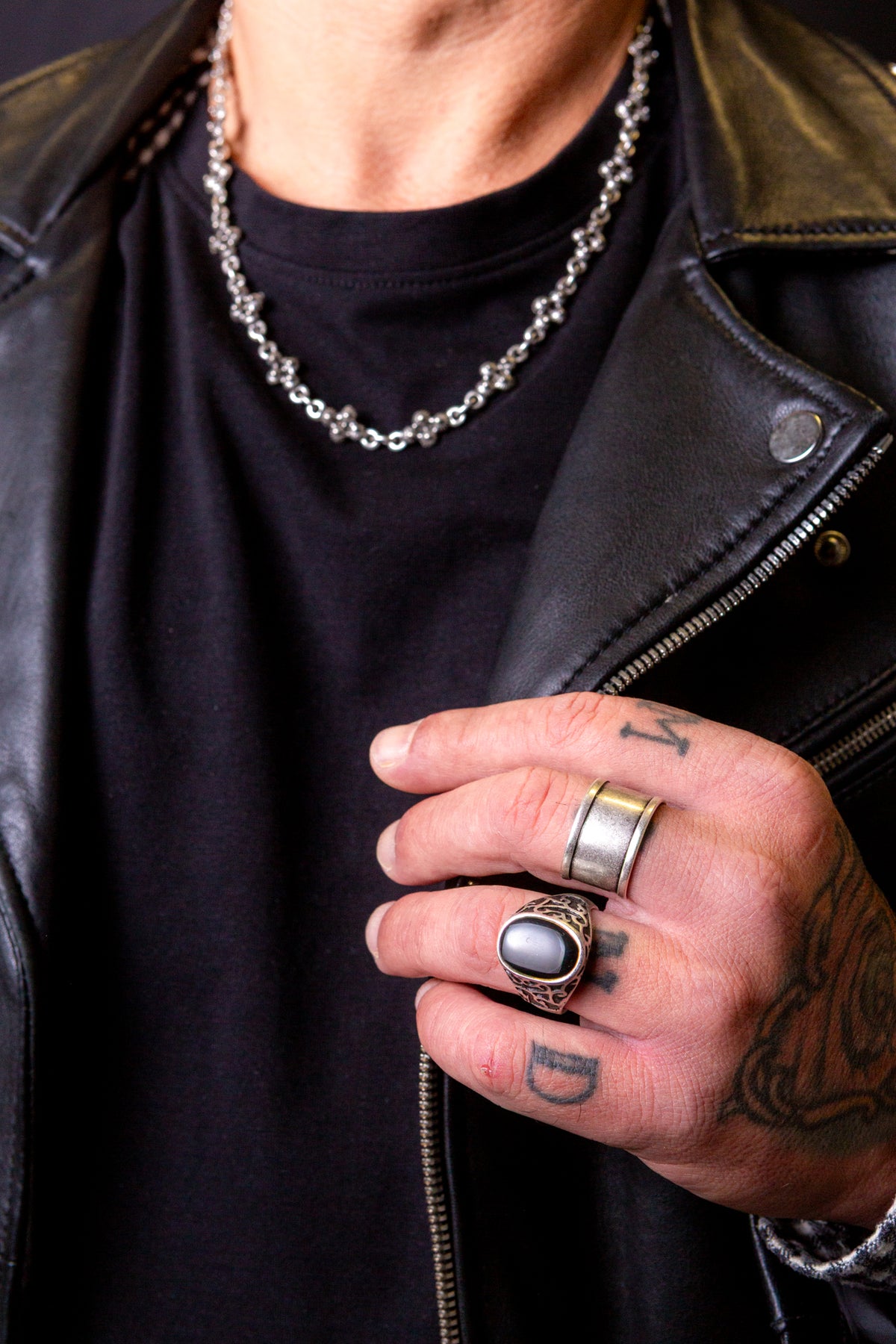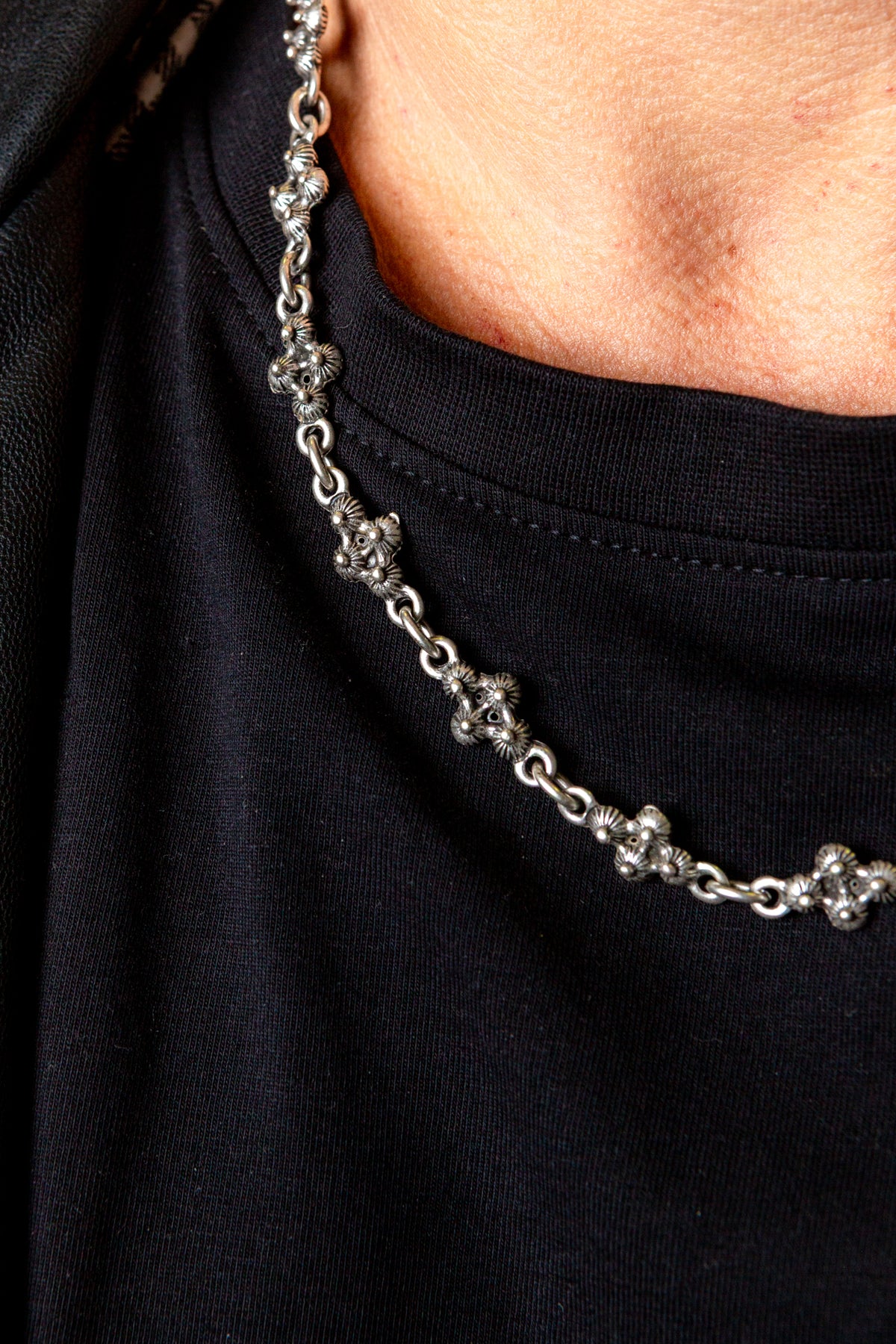 "King" è una collana realizzata con componenti in lega seminaturale (zinco, alluminio) e ottone. Il rivestimento è in argento brunito anallergico. La collana King la puoi indossare da sola o assieme ad altri gioielli Cryady. Per uomo e per donna. Ogni creazione Cryady è realizzata artigianalmente con dedizione e passione.